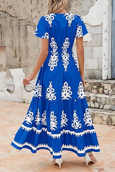 2025 아마존 국경 유럽 및 미국 새로운 V-Neck 보헤미안 우아한 뿔 소매 꽃 원피스스토어 가기