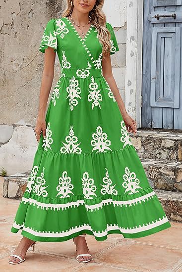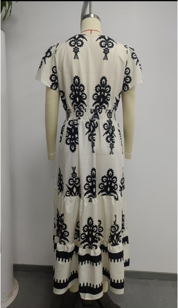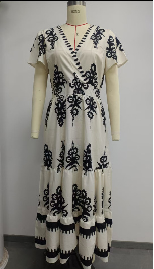 2025 아마존 국경 유럽 및 미국 새로운 V-Neck 보헤미안 우아한 뿔 소매 꽃 원피스