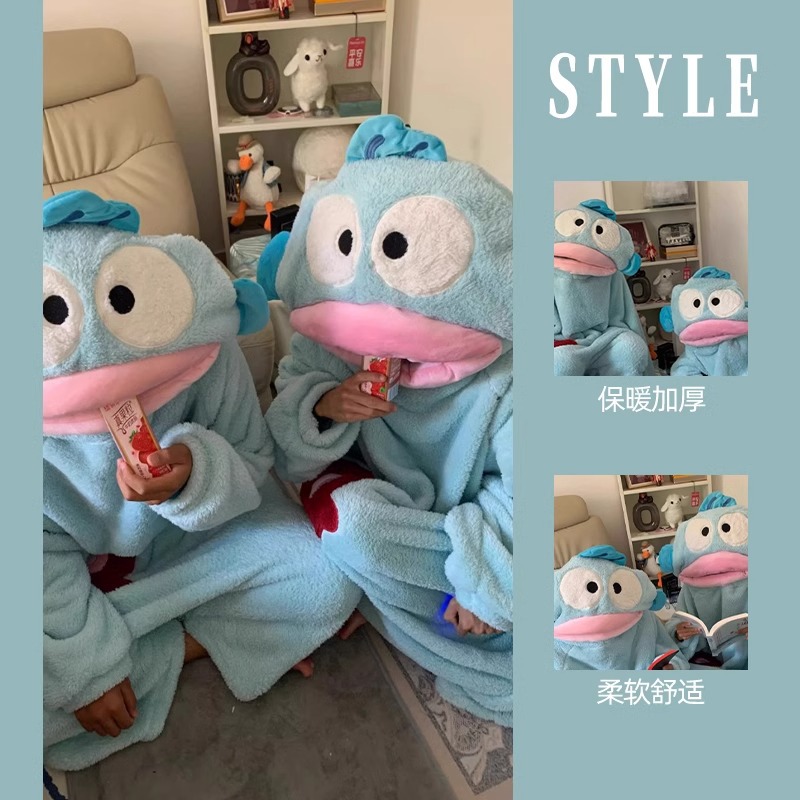 한톤 못생긴 물고기 남자와 여자를위한 귀여운 재미있는 커플 잠옷 겨울 모래 조각 두꺼운 산호 양털 만화 홈 옷스토어 가기