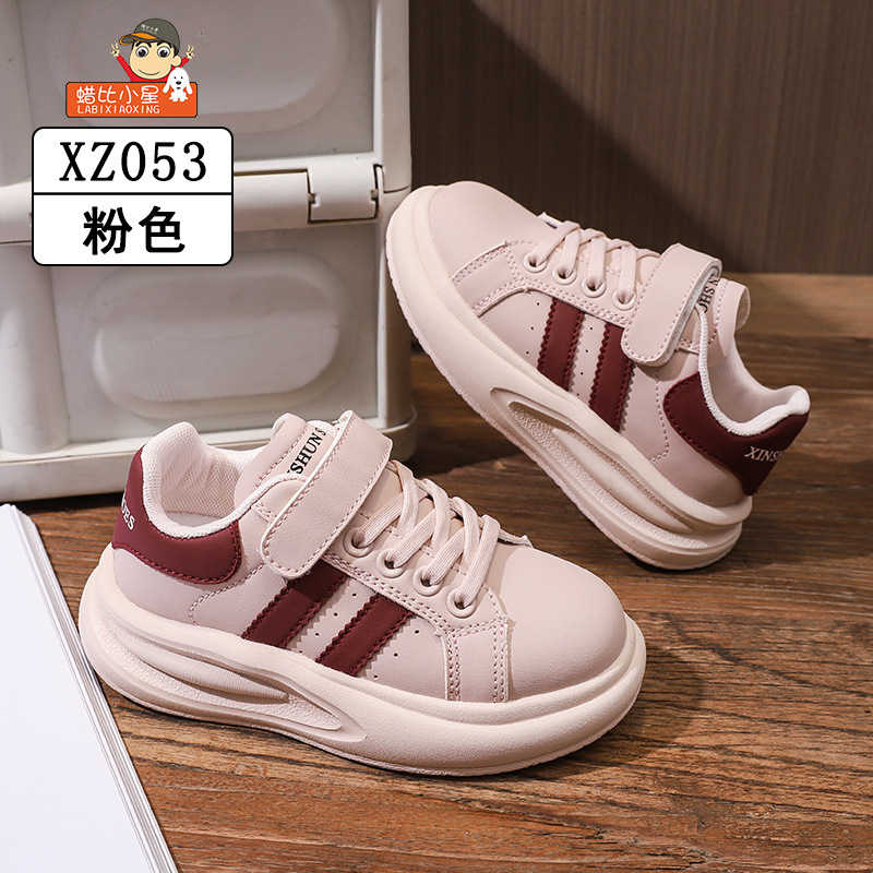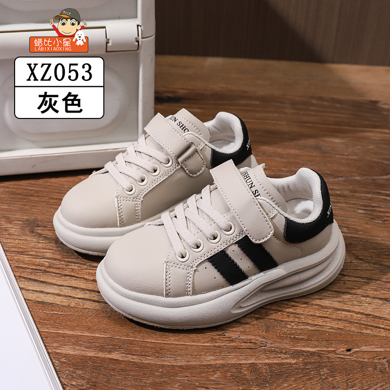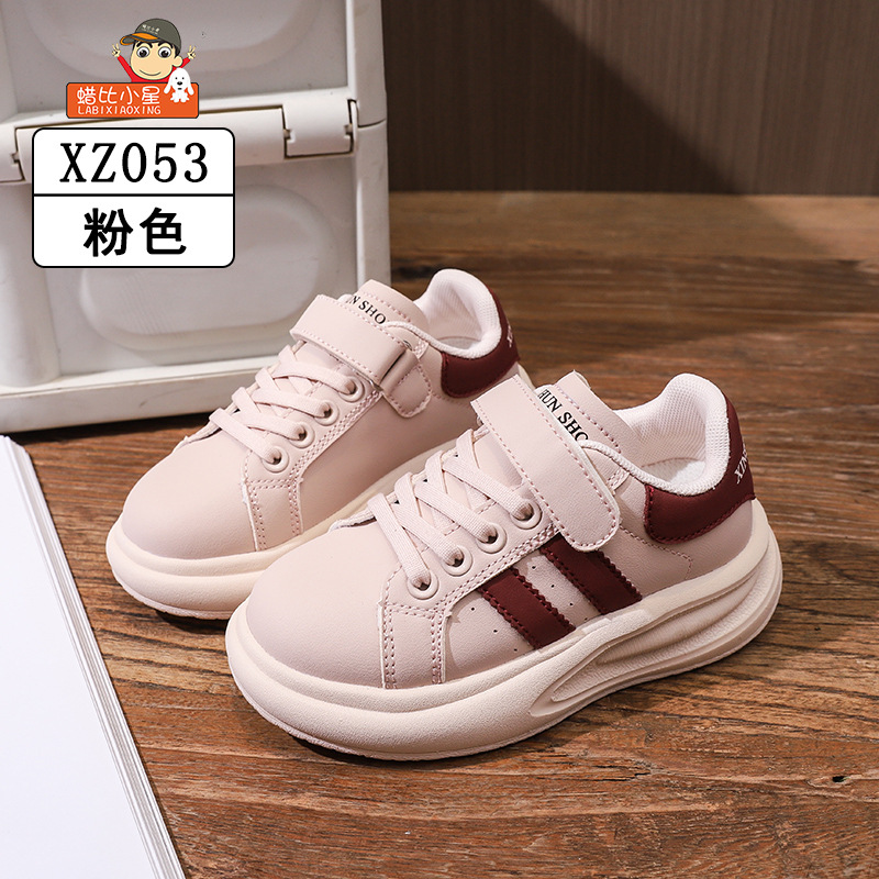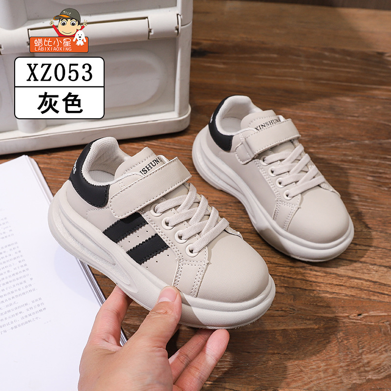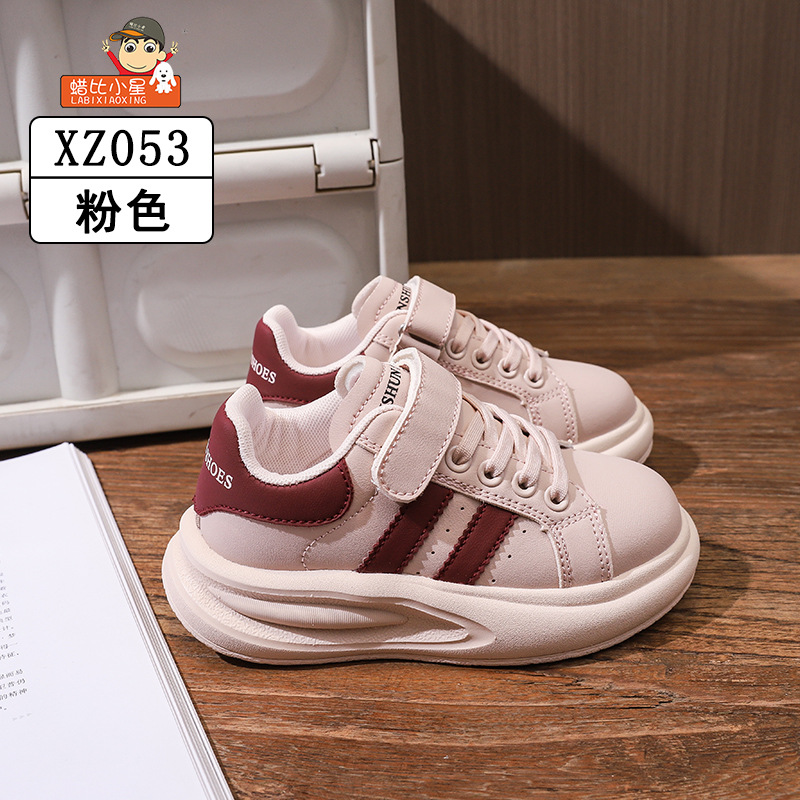 Wax Bixiaoxing Cold Sticky 가벼운 밑창 울트라 파이버 가죽 벨크로 운동화 소년 소녀 어린이를위한 봄 및 가을 새로운 부드러운 밑창 흰색 신발