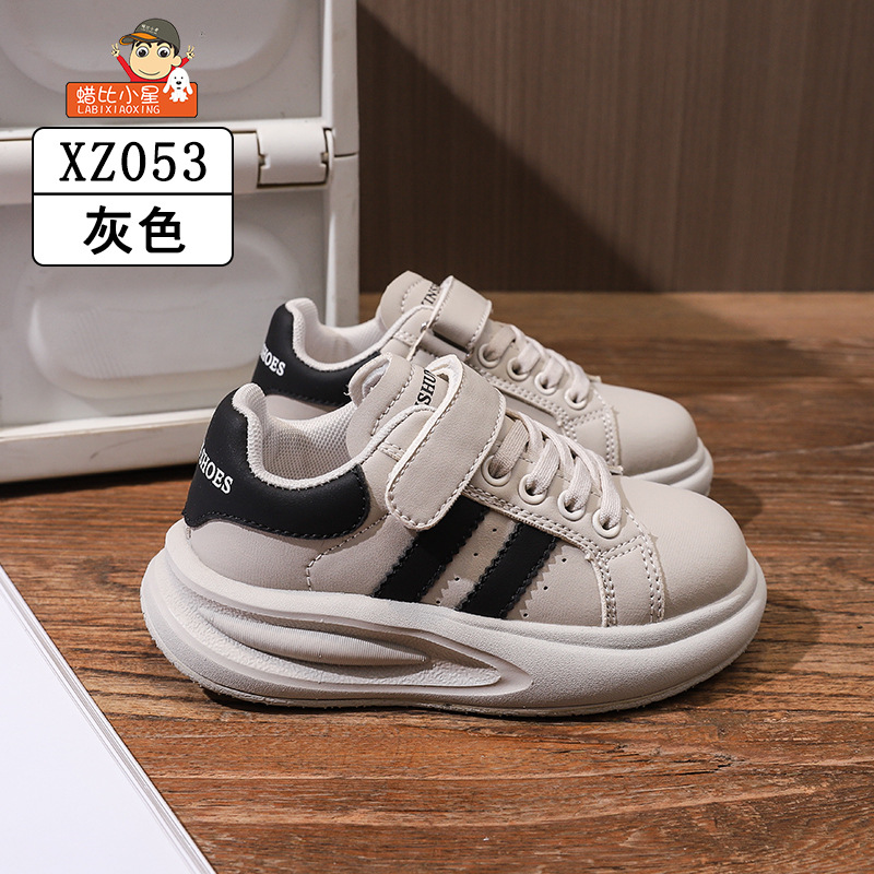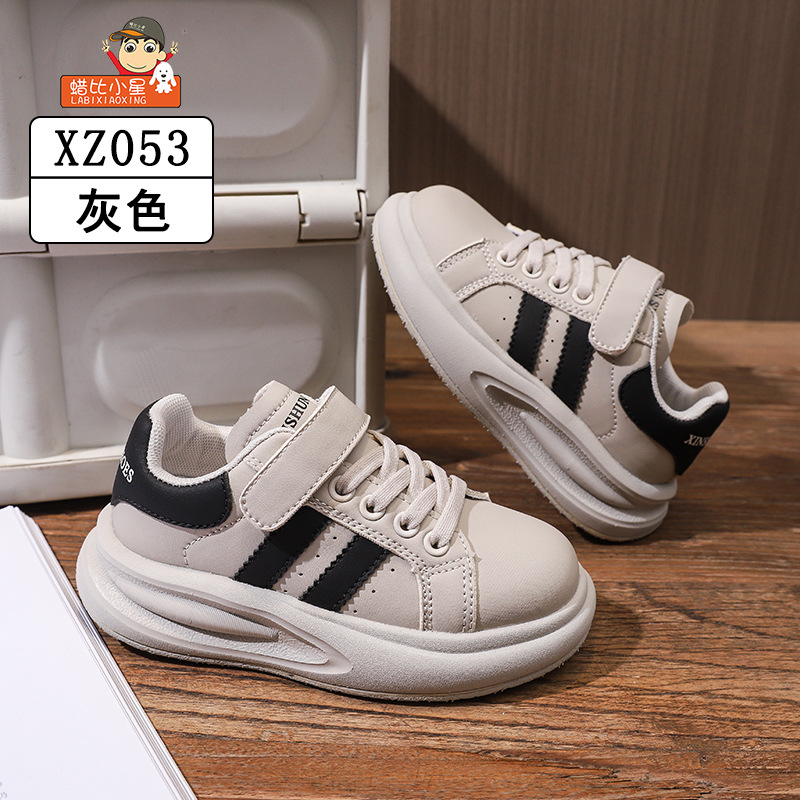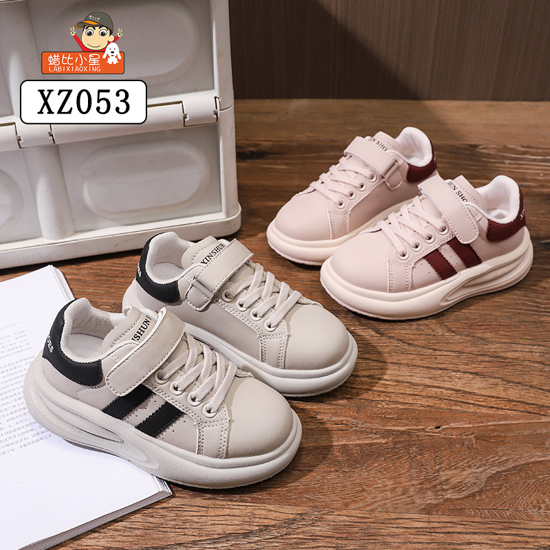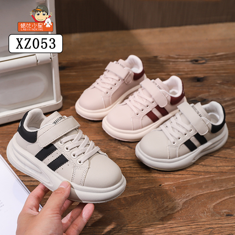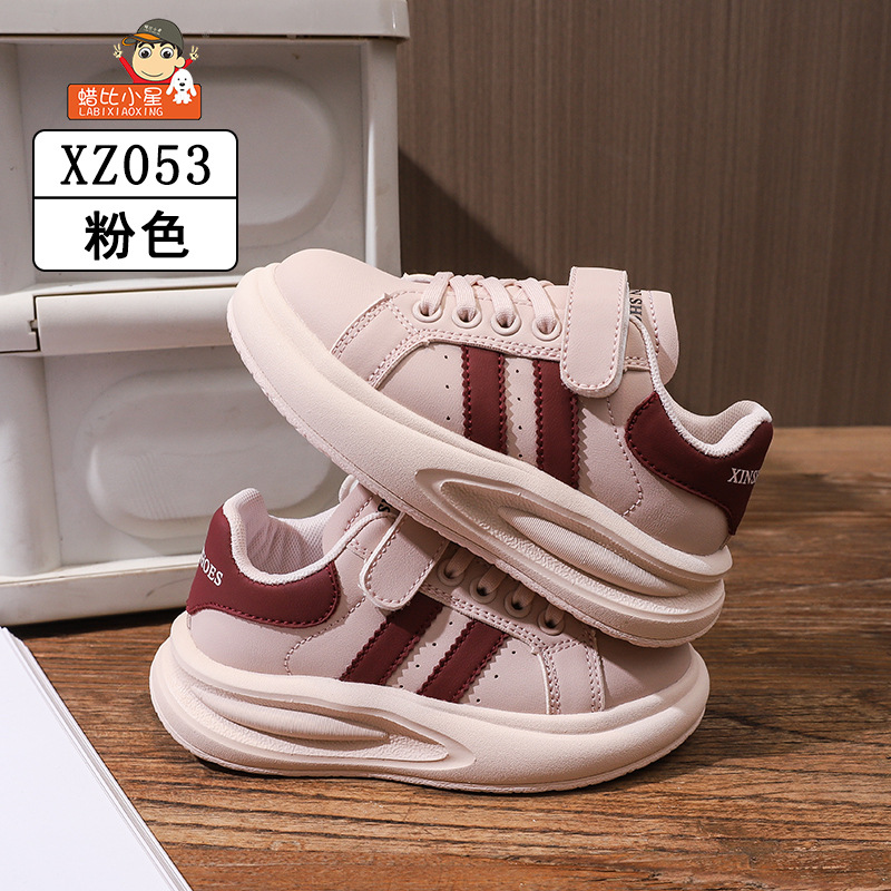 Wax Bixiaoxing Cold Sticky 가벼운 밑창 울트라 파이버 가죽 벨크로 운동화 소년 소녀 어린이를위한 봄 및 가을 새로운 부드러운 밑창 흰색 신발