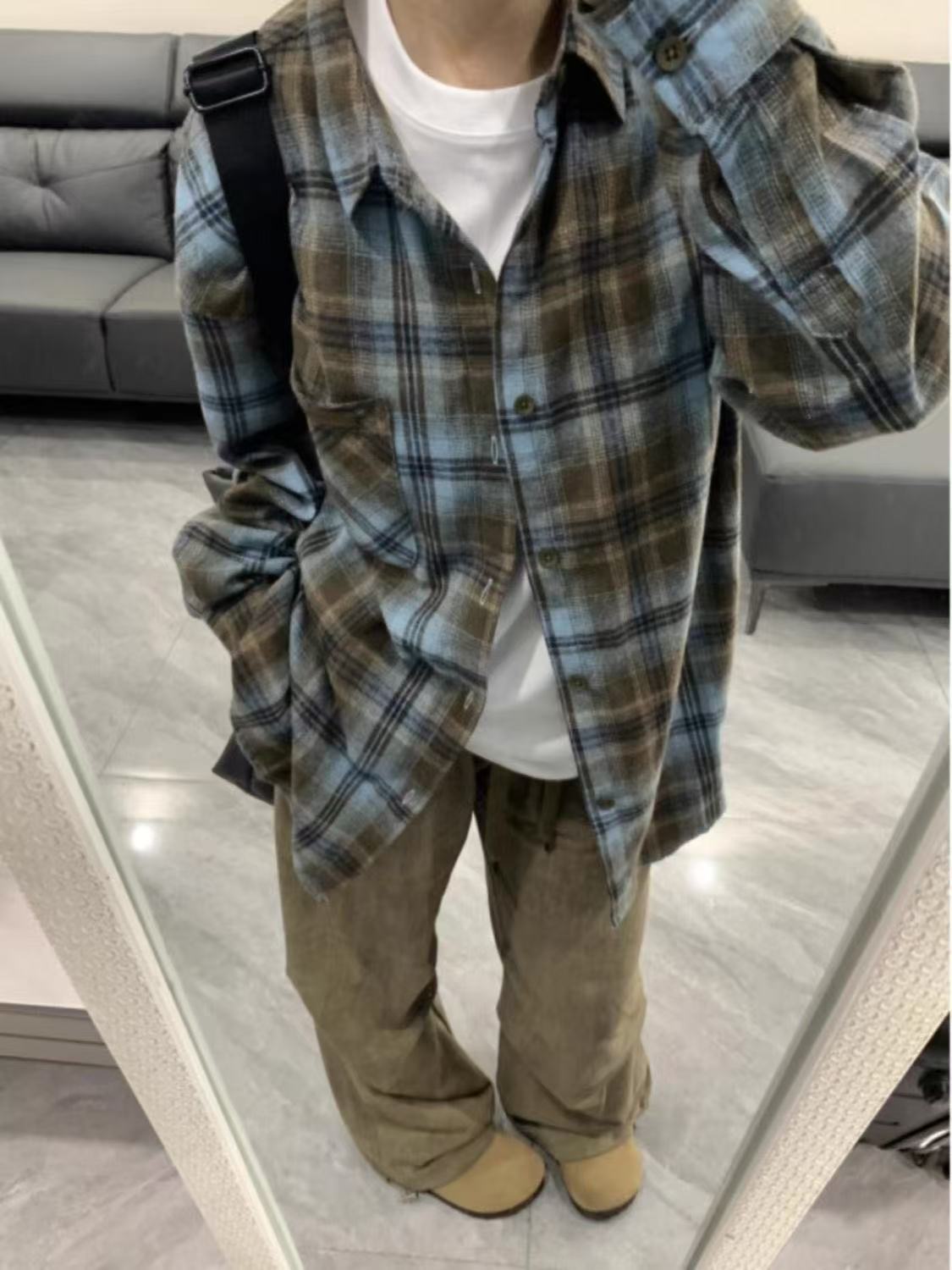 • K03 흑백 그리드#정품 코튼 셔츠