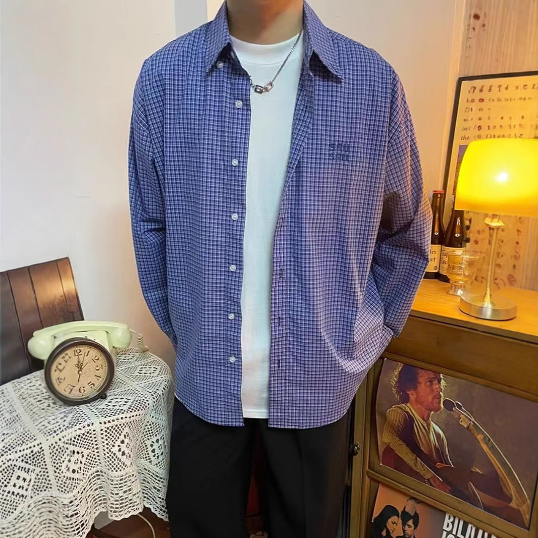 • YC91 작은 파란색 그리드#정품 코튼 셔츠