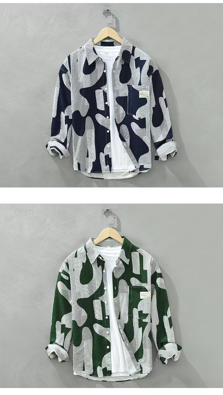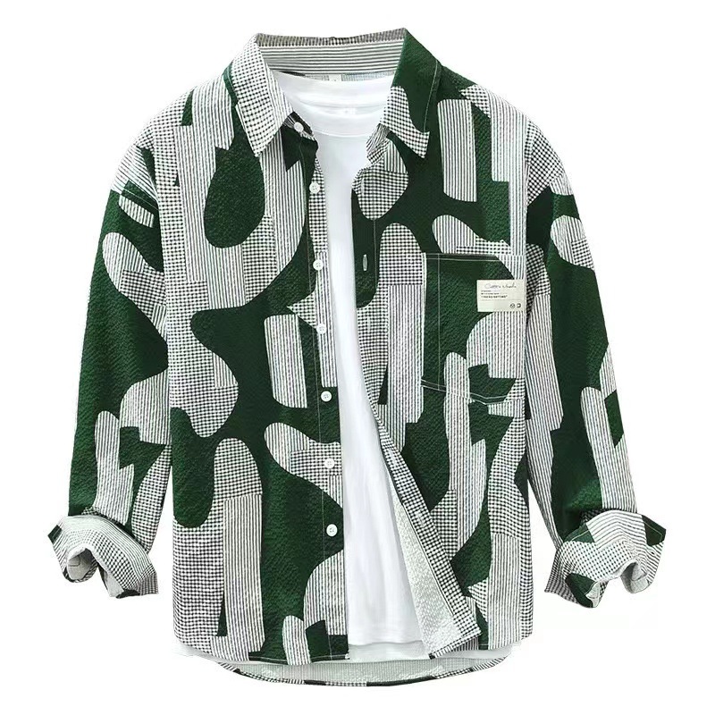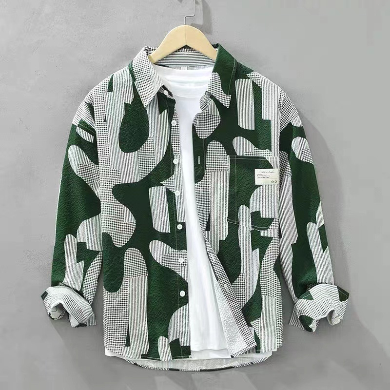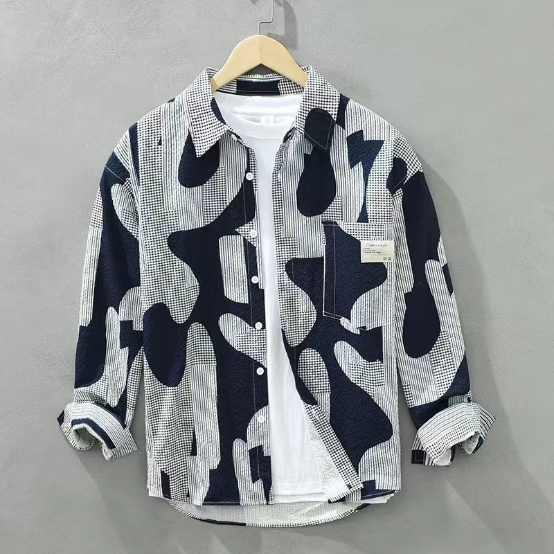 남성용 패셔너블한 고급 꽃무늬 긴팔 셔츠, 트렌디한 브랜드, 가벼운 럭셔리, 캐주얼한 개성, 컬러풀한 프린트 셔츠스토어 가기