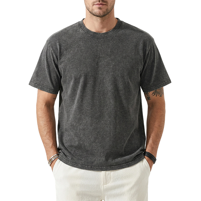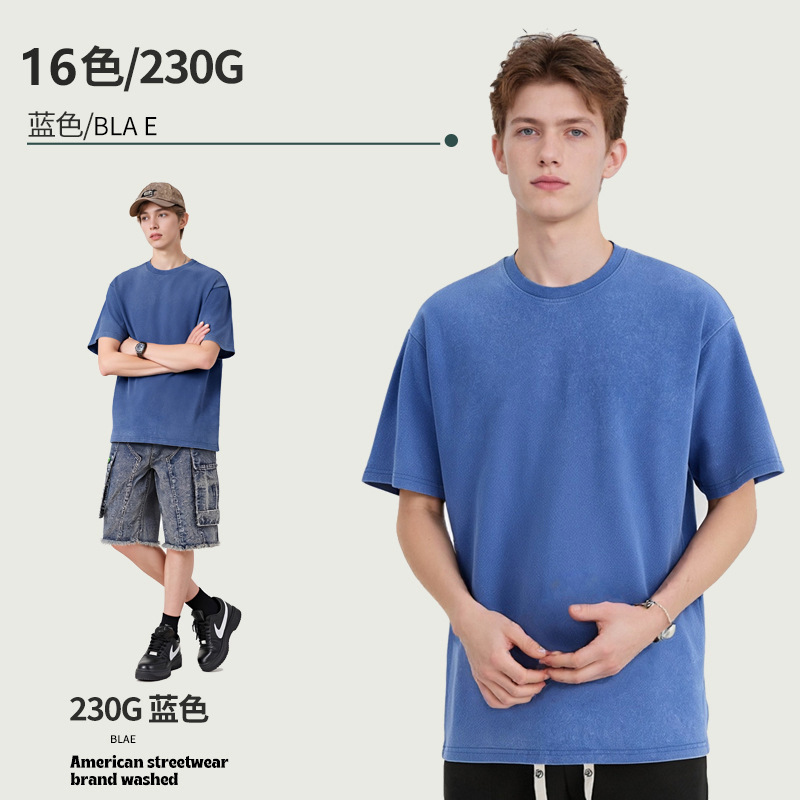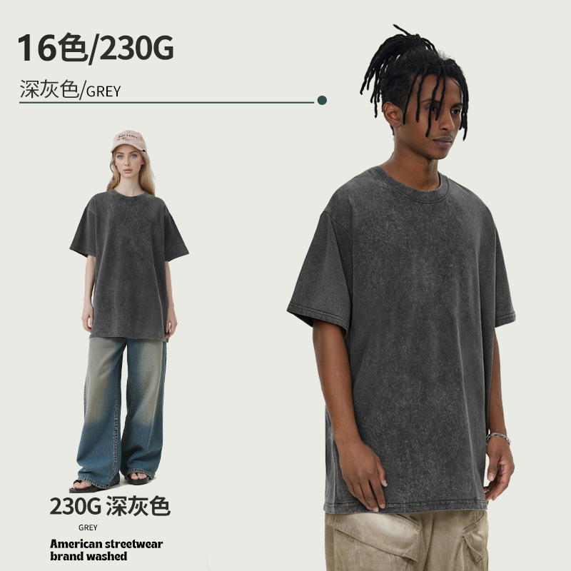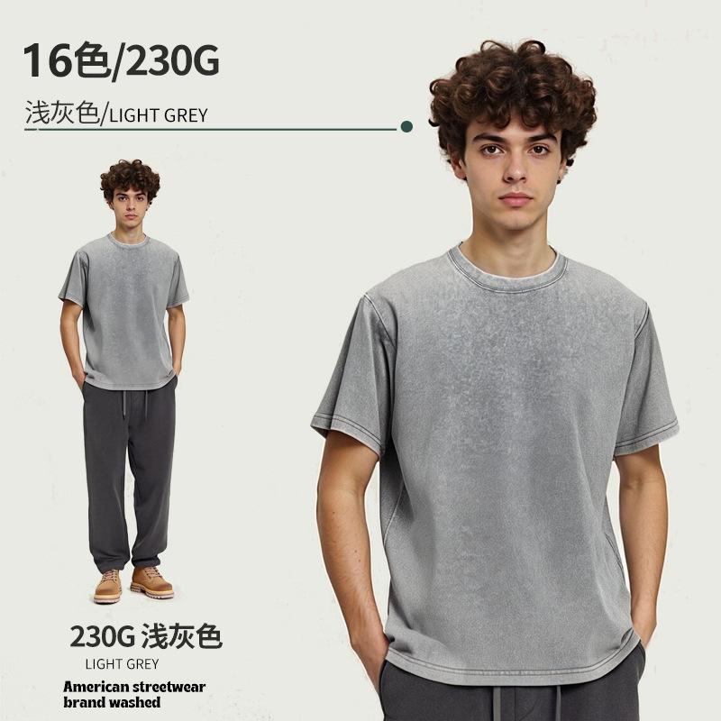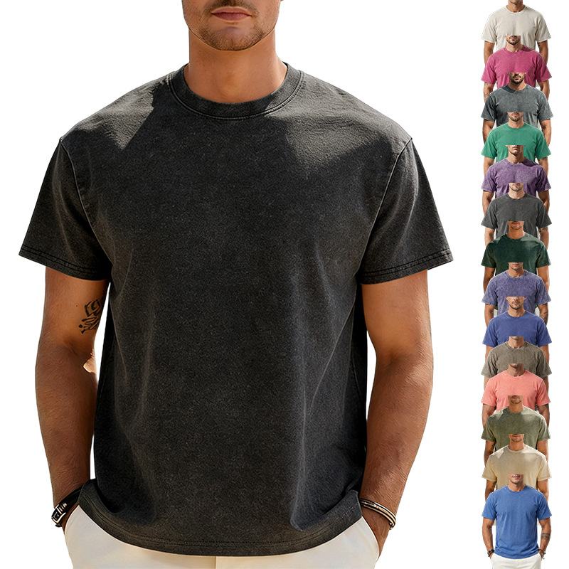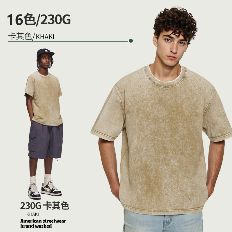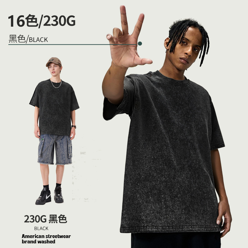 아마존 해외배송 230g 워싱 빈티지 티셔츠 헤비웨이트 라운드넥 드롭숄더 오버사이즈 남성 아메리칸 레트로 반팔 티셔츠스토어 가기