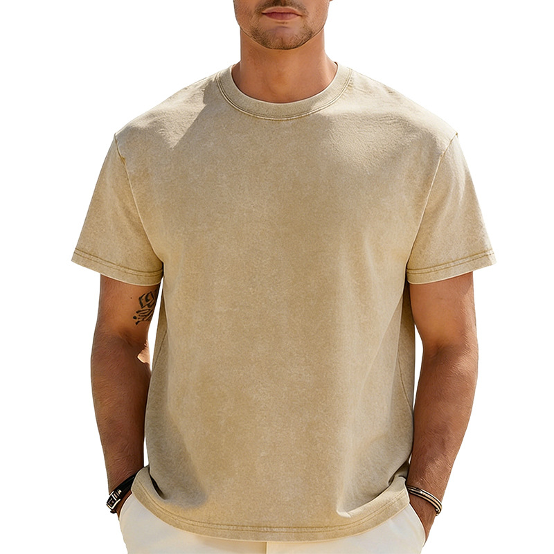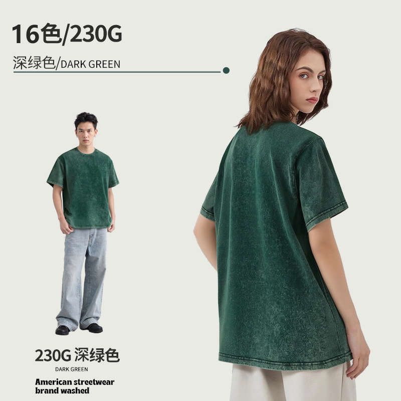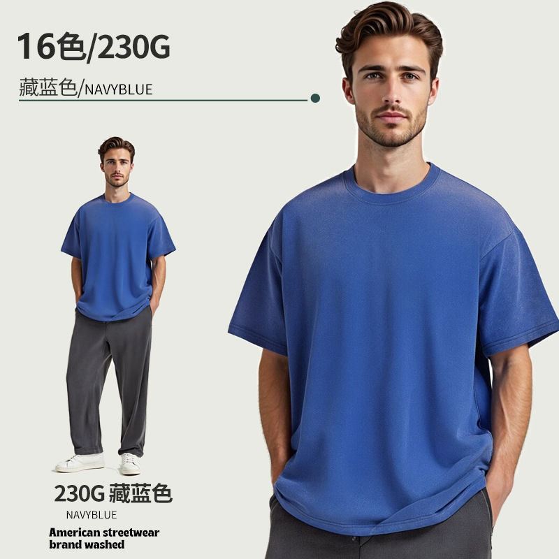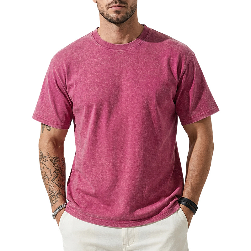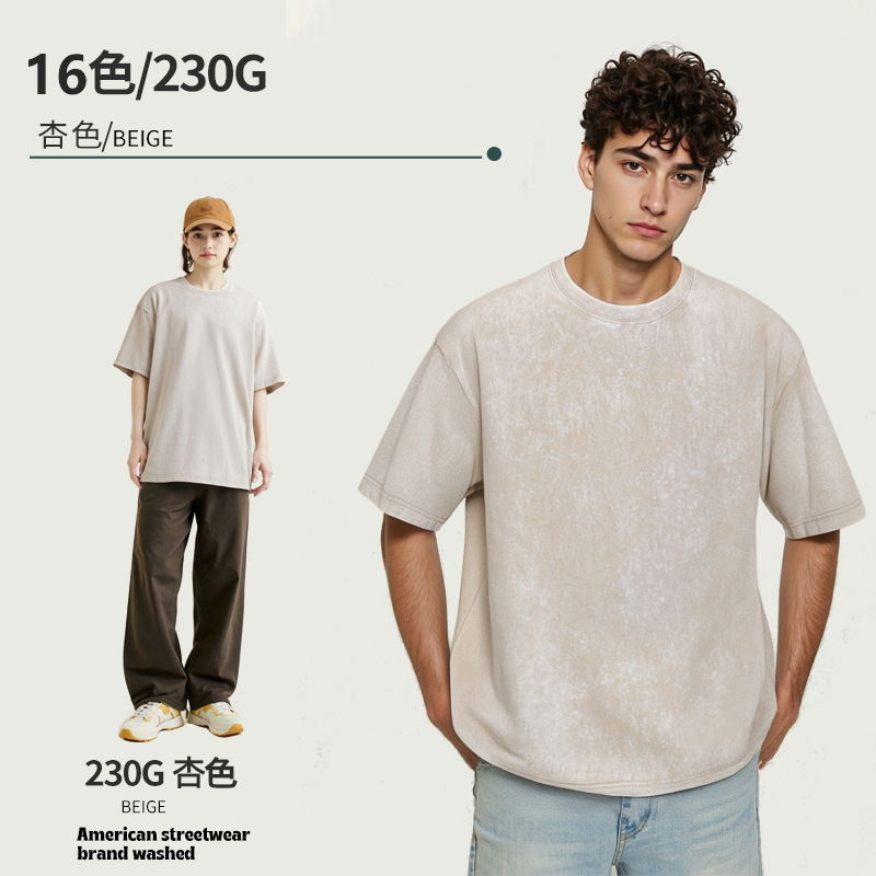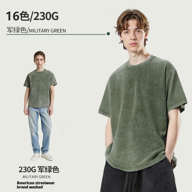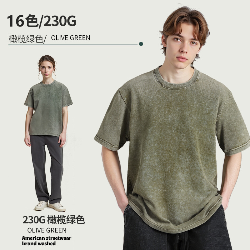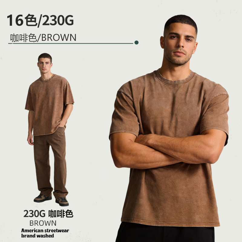 아마존 해외배송 230g 워싱 빈티지 티셔츠 헤비웨이트 라운드넥 드롭숄더 오버사이즈 남성 아메리칸 레트로 반팔 티셔츠스토어 가기