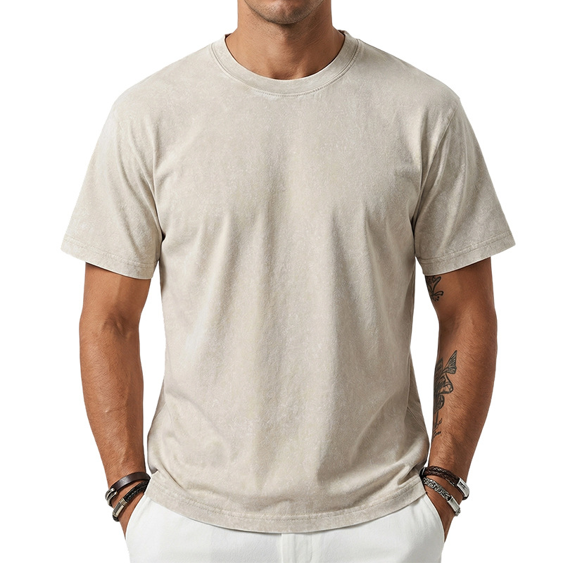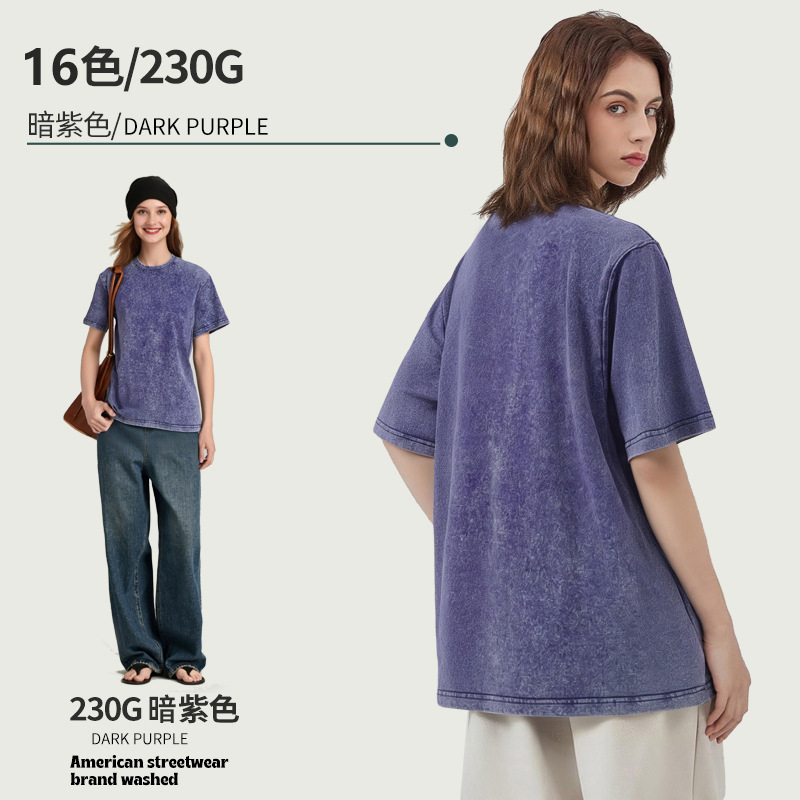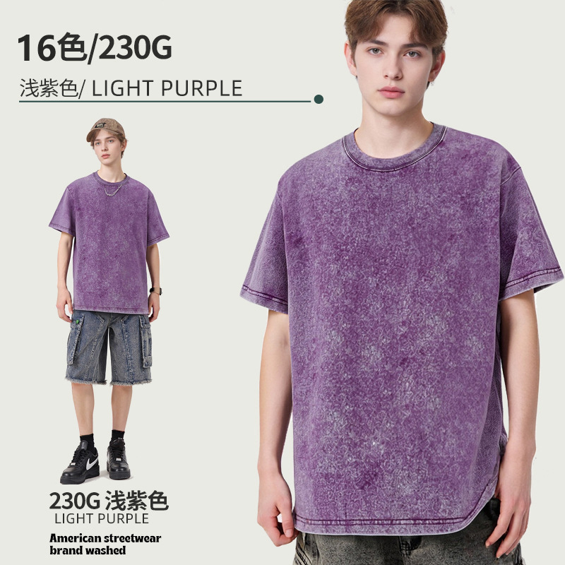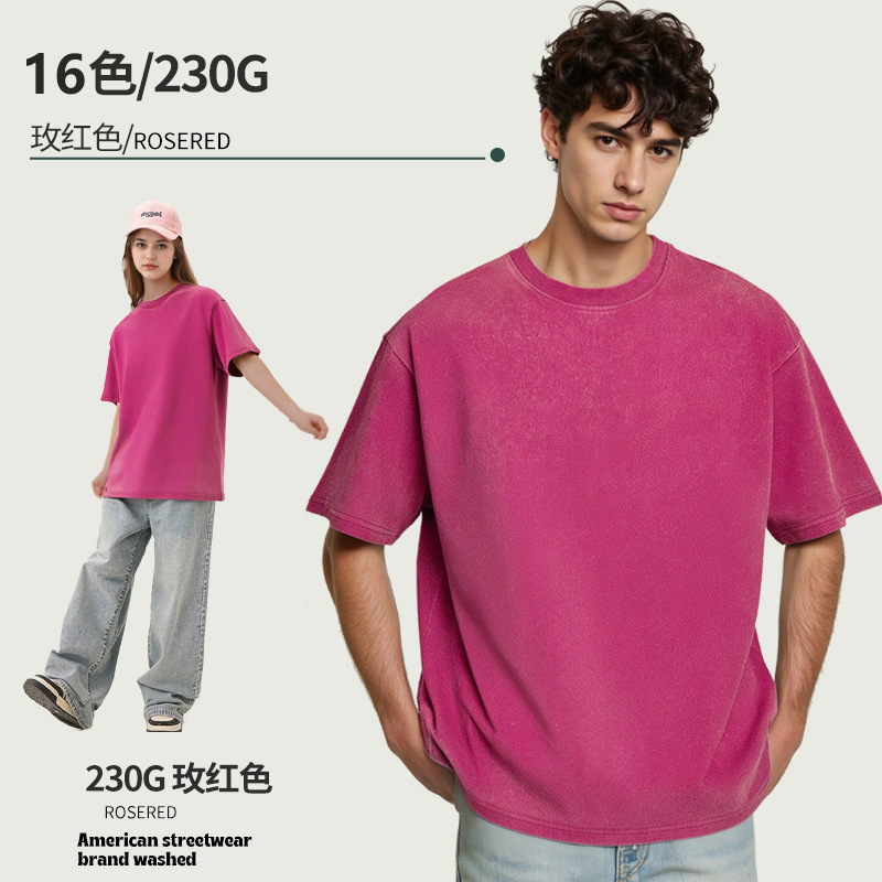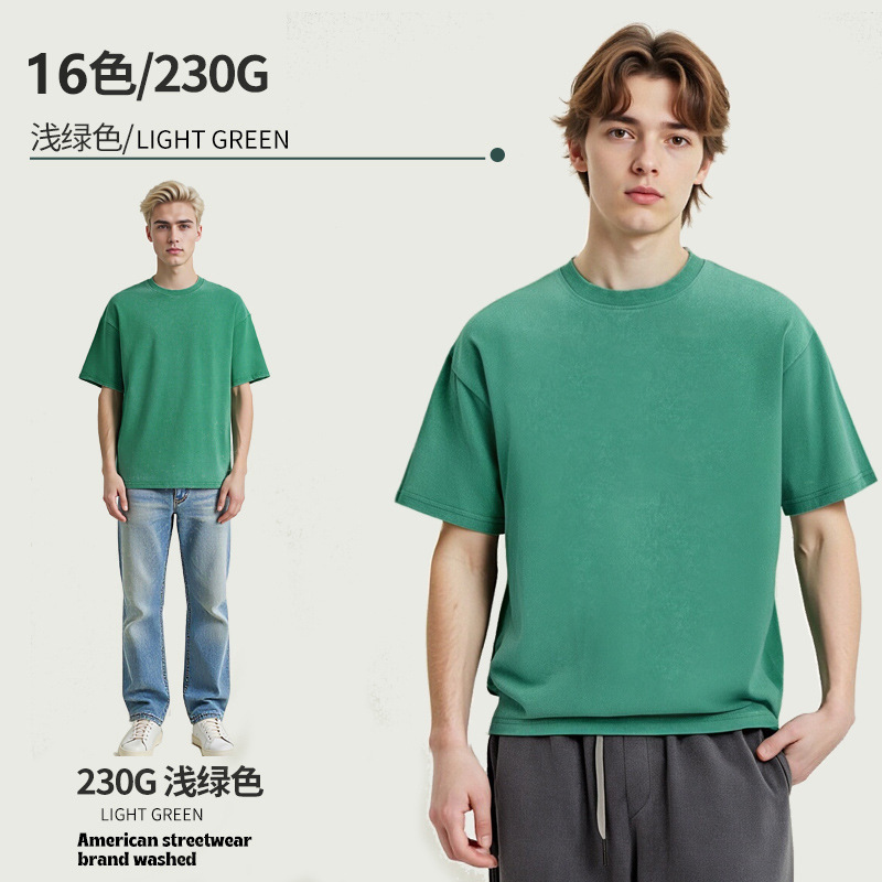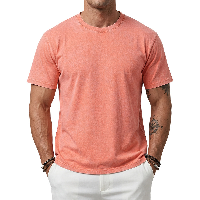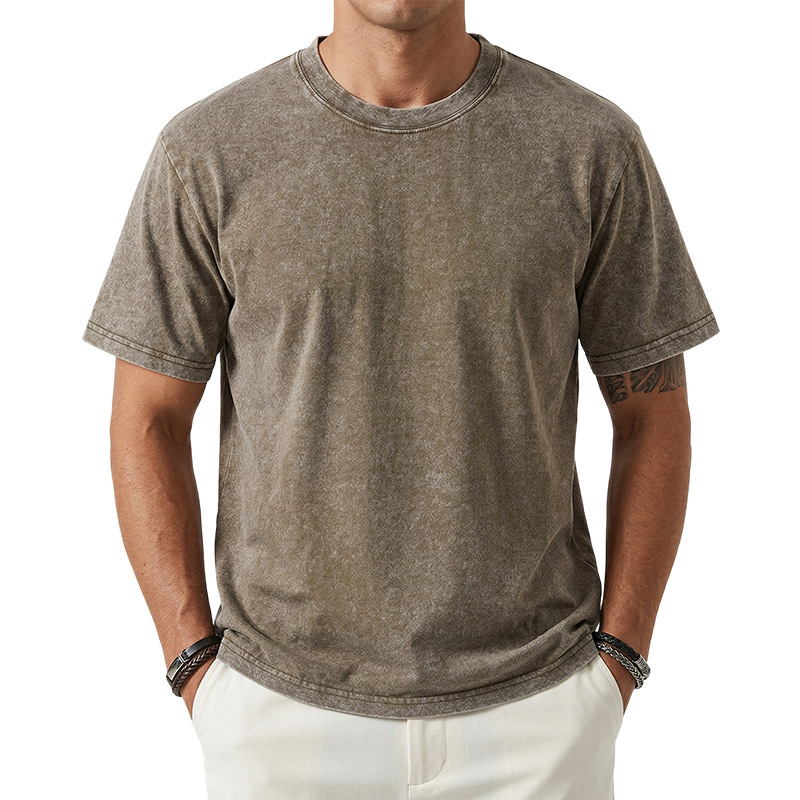 아마존 해외배송 230g 워싱 빈티지 티셔츠 헤비웨이트 라운드넥 드롭숄더 오버사이즈 남성 아메리칸 레트로 반팔 티셔츠스토어 가기