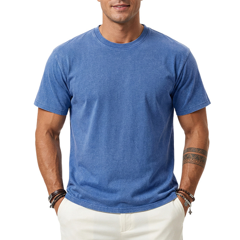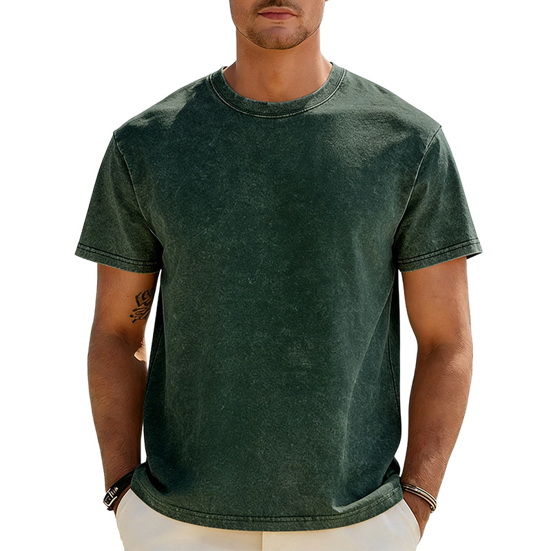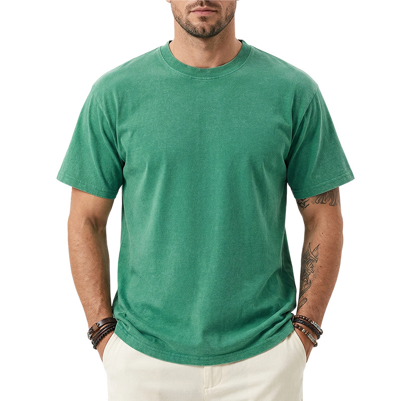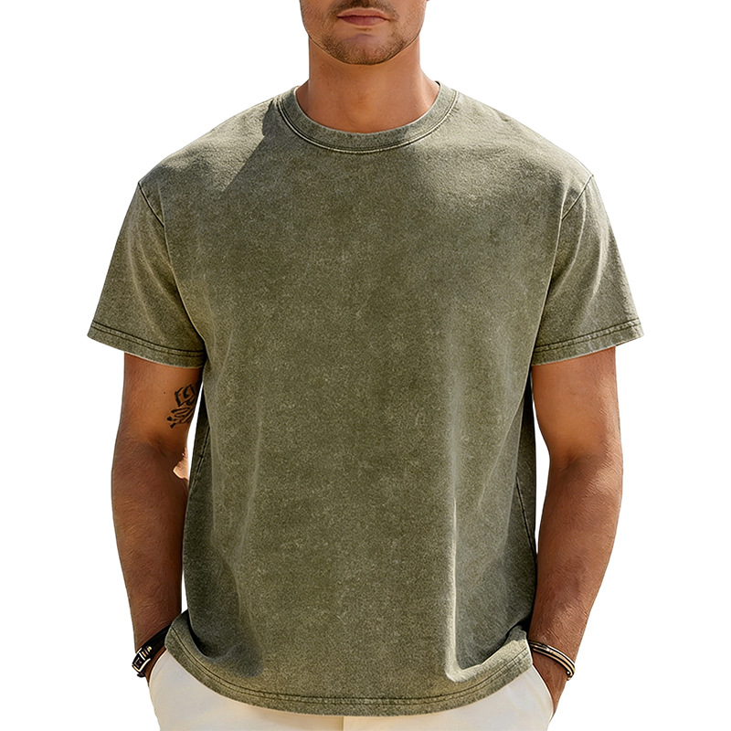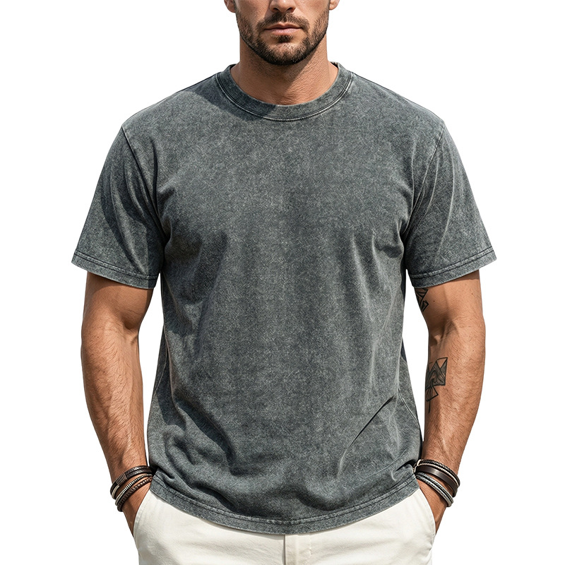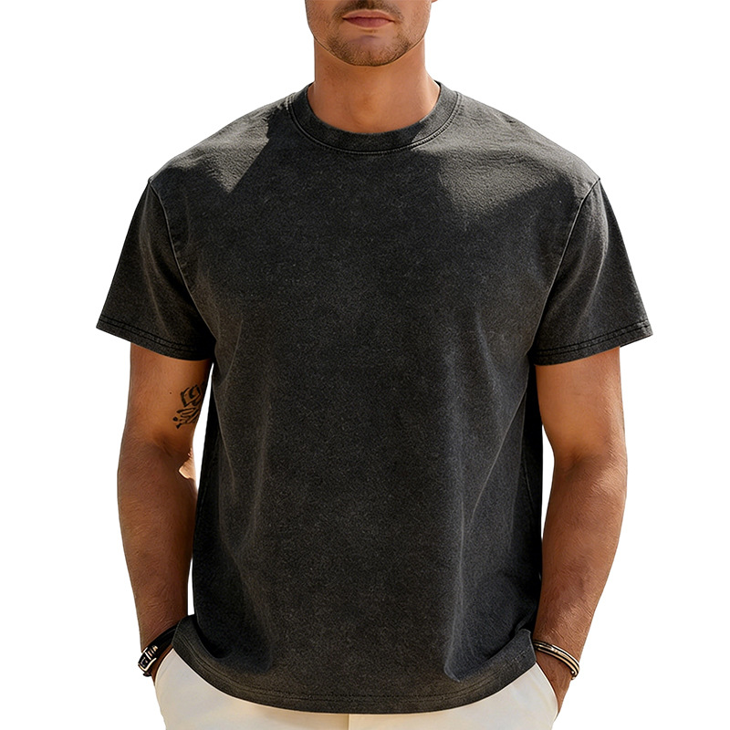 아마존 해외배송 230g 워싱 빈티지 티셔츠 헤비웨이트 라운드넥 드롭숄더 오버사이즈 남성 아메리칸 레트로 반팔 티셔츠