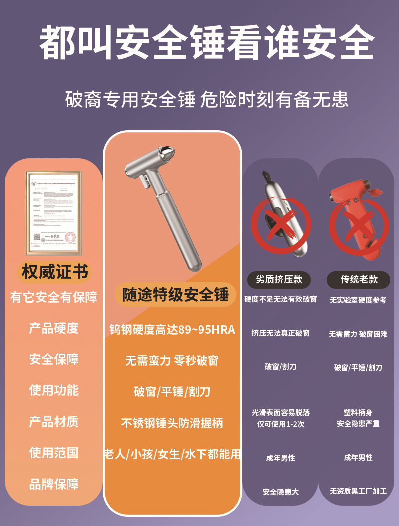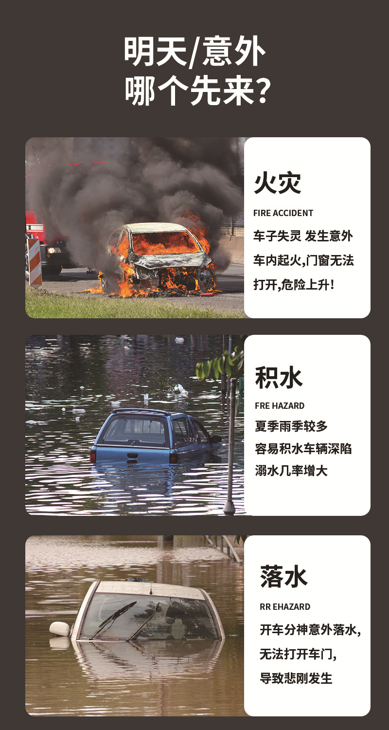 【宁可百年不用,不可一日不备,为您的安全保驾护航】产品虽小,威力不小,轻松破 窗,易于存放,越简单,越实用!危急时刻一个安全锤=一个救生的希望!
