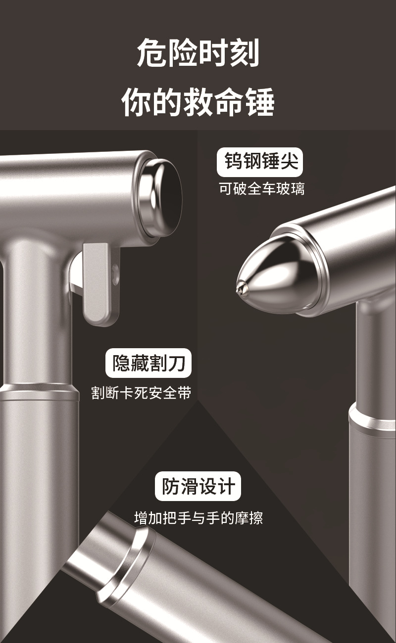 一款为女司机、男青年司机打造破窗金属安全锤, 小巧玲珑、钨钢锤尖漂亮实用,应急逃生锤D520