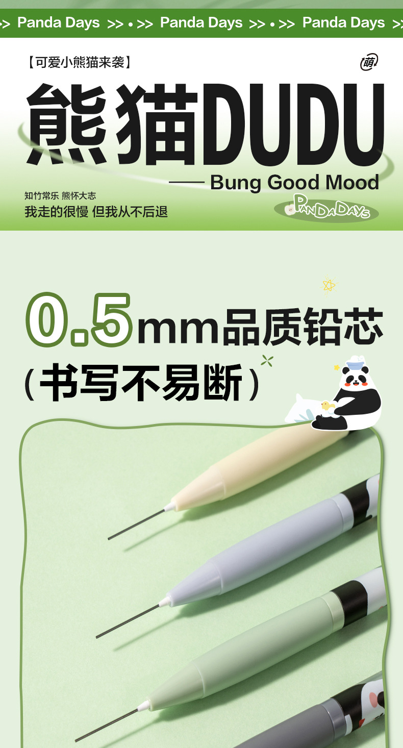 델리 SH176 팬더 자동 코어 0.7/0.5 활동 연필 학생 만화 그리기 쓰기 자동 연필