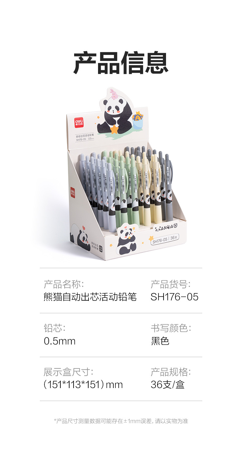 델리 SH176 팬더 자동 코어 0.7/0.5 활동 연필 학생 만화 그리기 쓰기 자동 연필스토어 가기