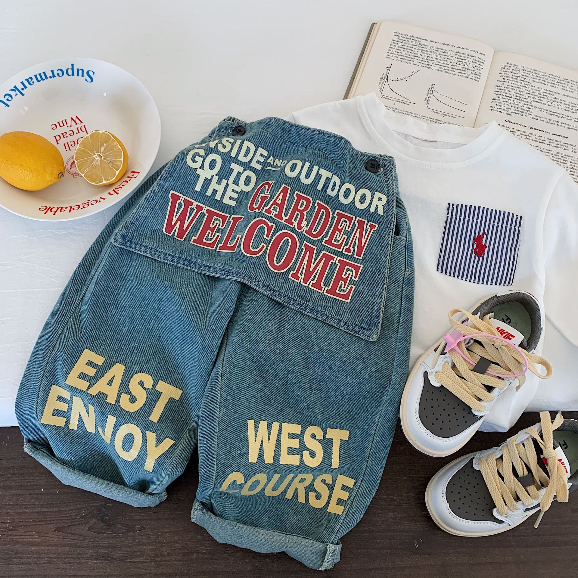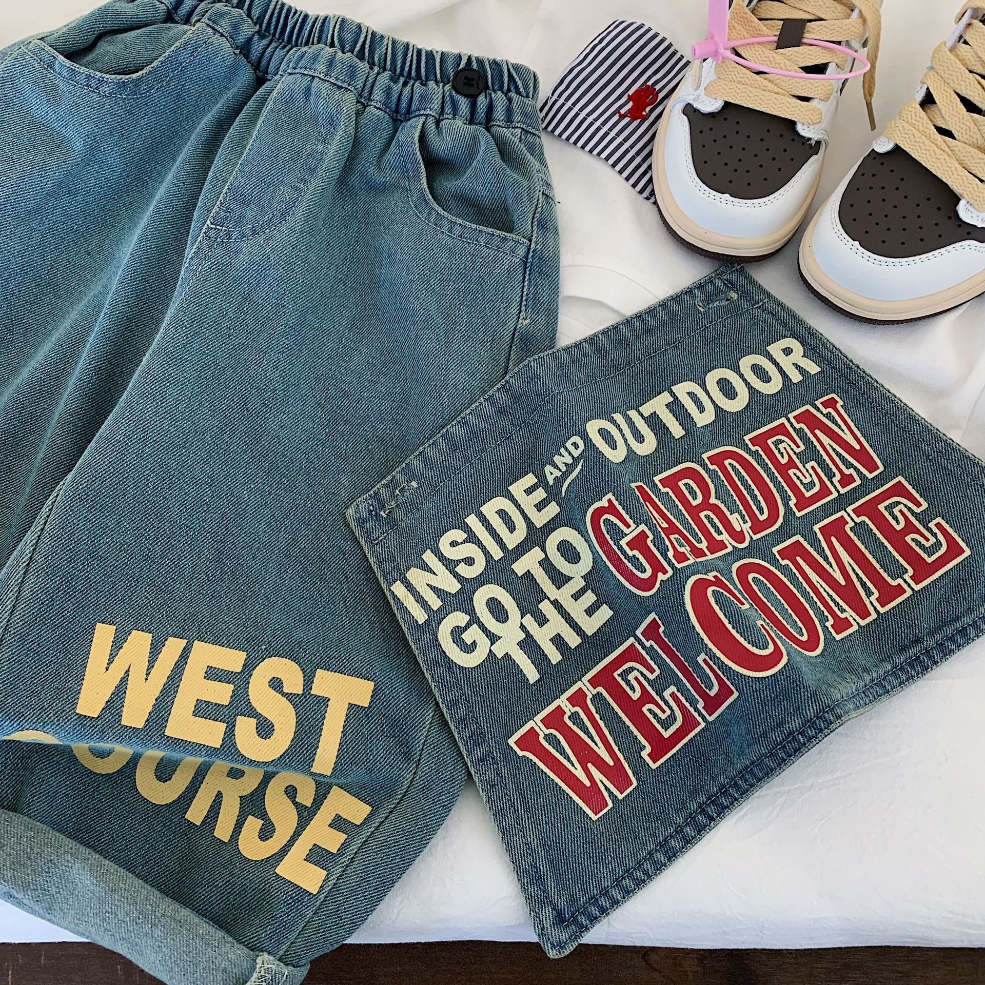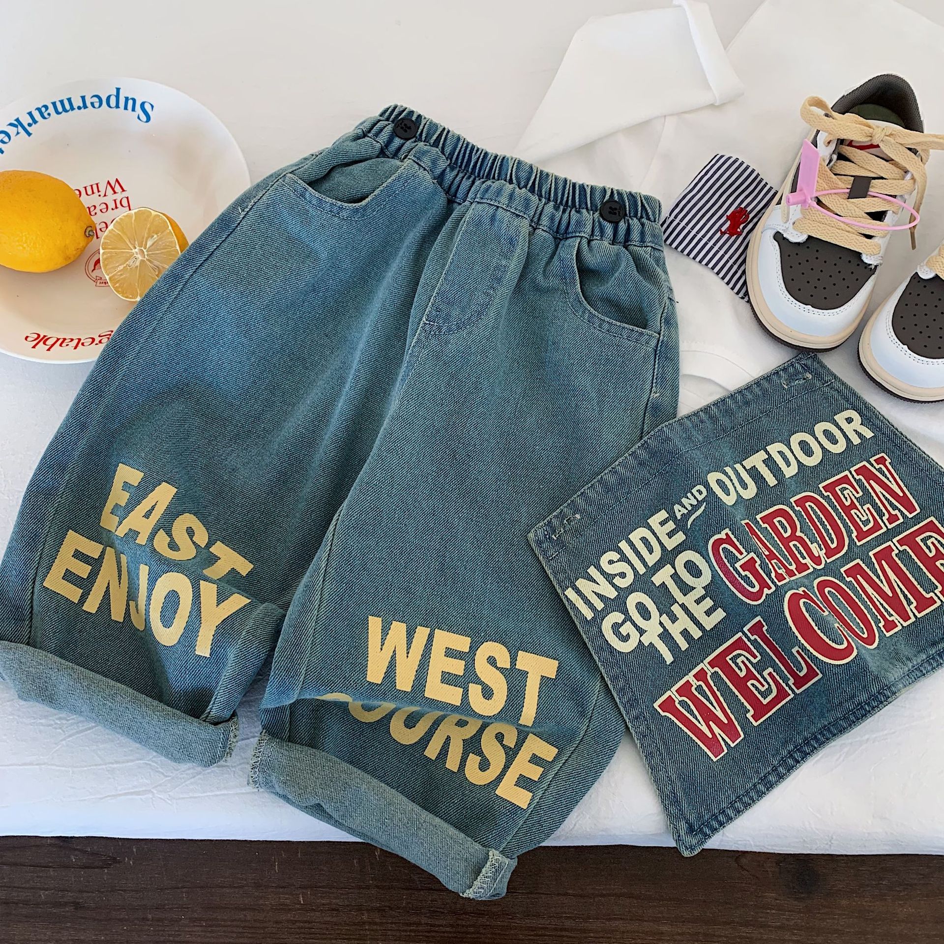 아동용 긴바지 2025년 가을 신상품 남녀 아동용 프린트 레터링 데님 팬츠 유아용 스타일리시 와이드 팬츠