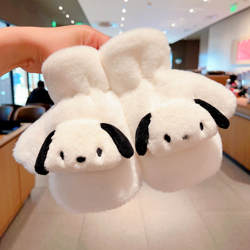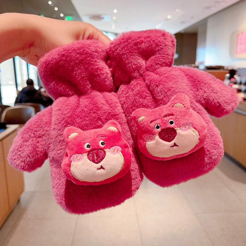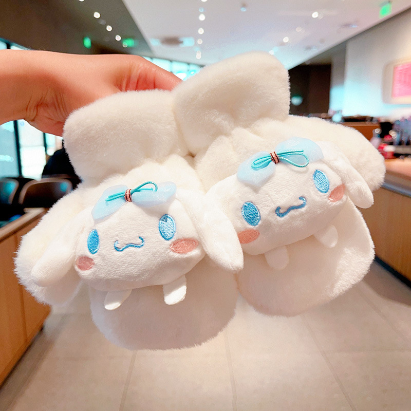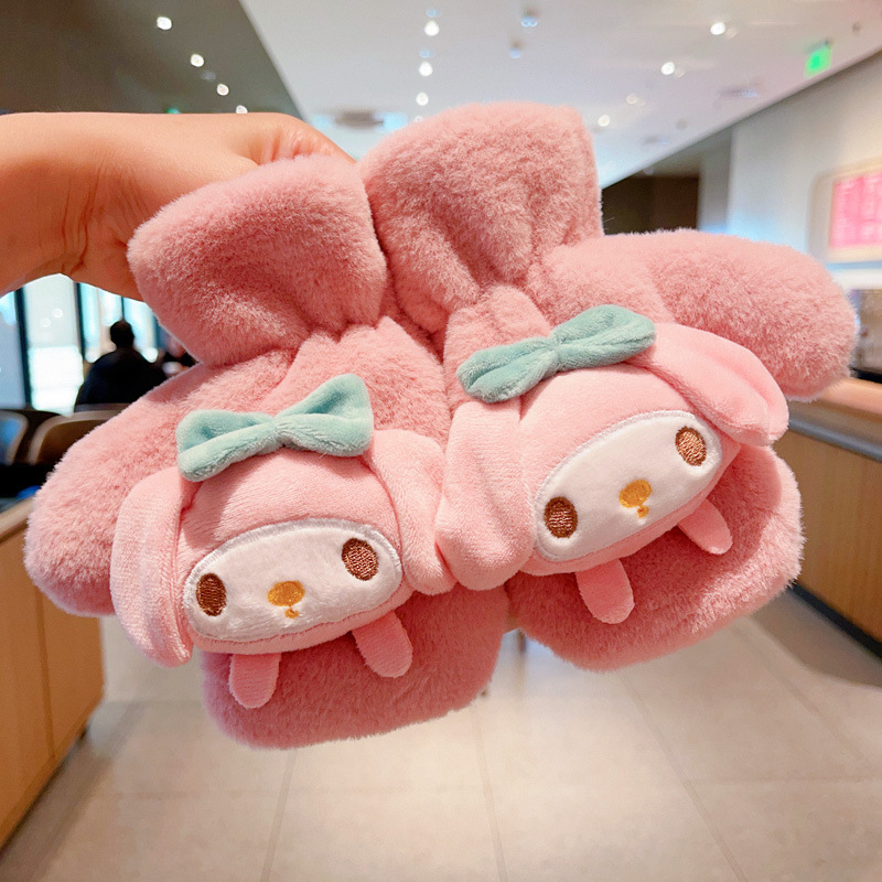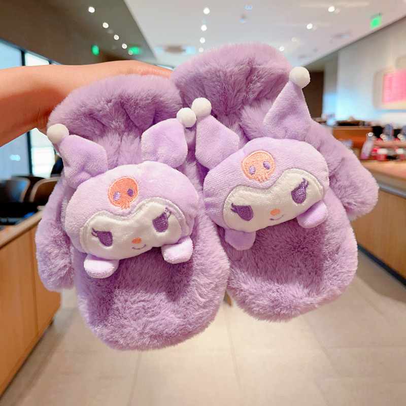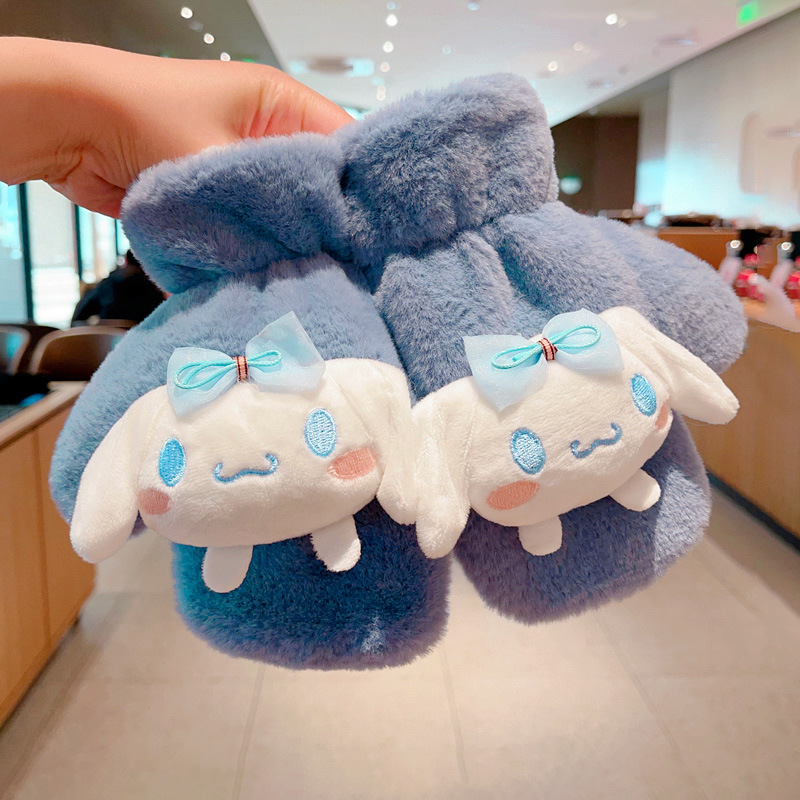 Kulomi 어린이 장갑 겨울 따뜻한 소녀 만화 산리오 모피 가방 목에 대한 두꺼운 기모스토어 가기