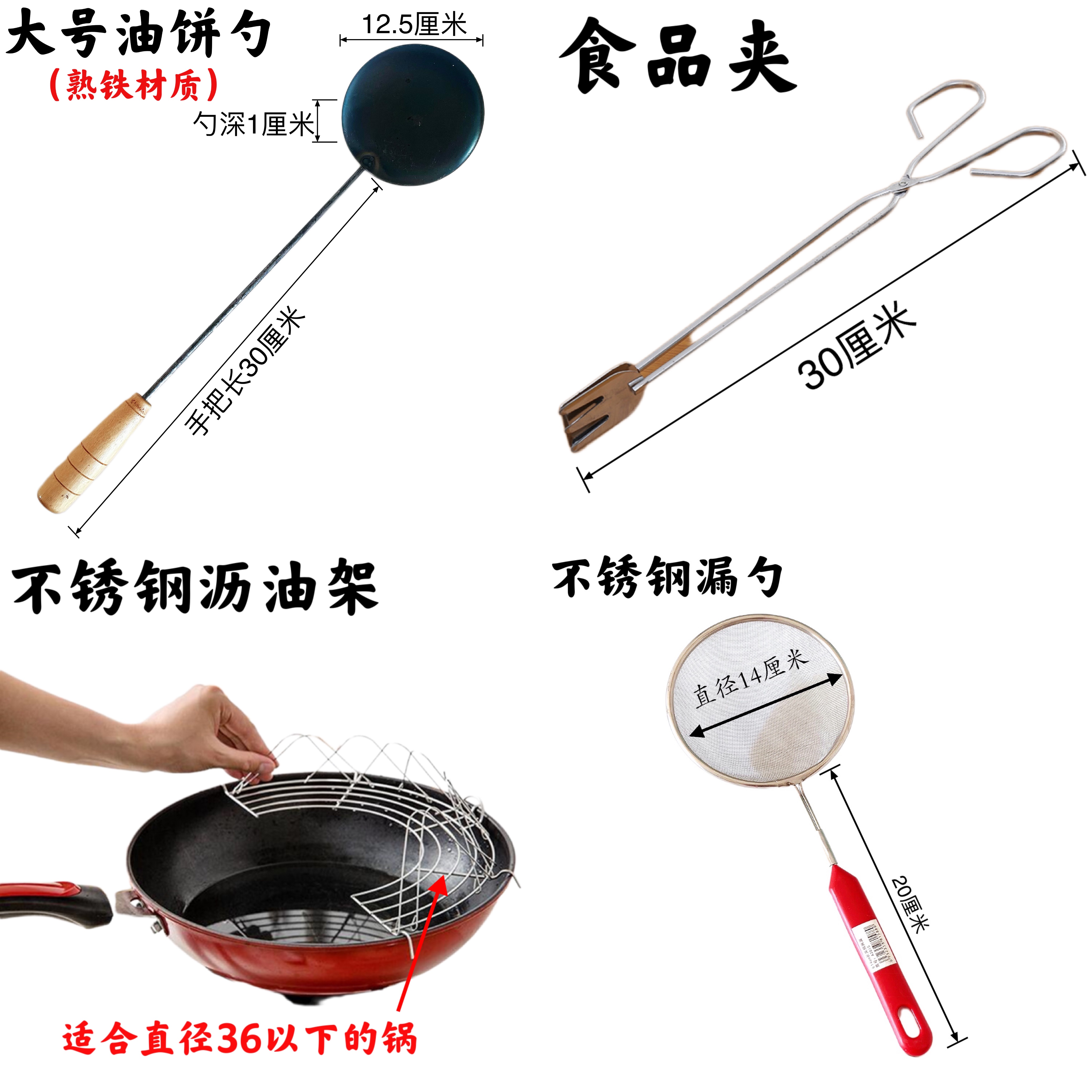• 작은 사이즈 3개 + 집게 + 소쿠리 + 기름 빼기 랙 (긴튀김 젓가락 포함) ✓