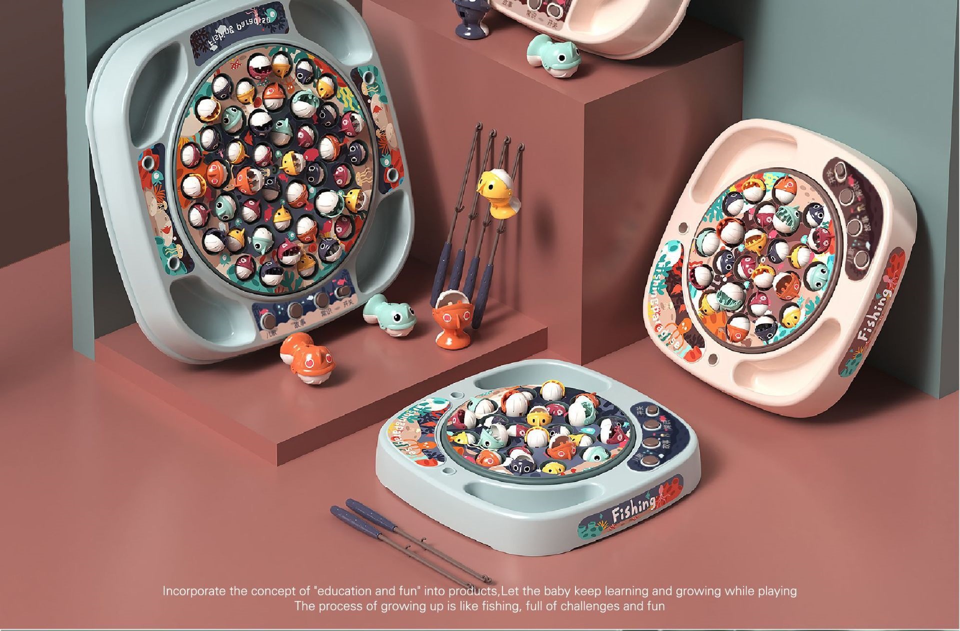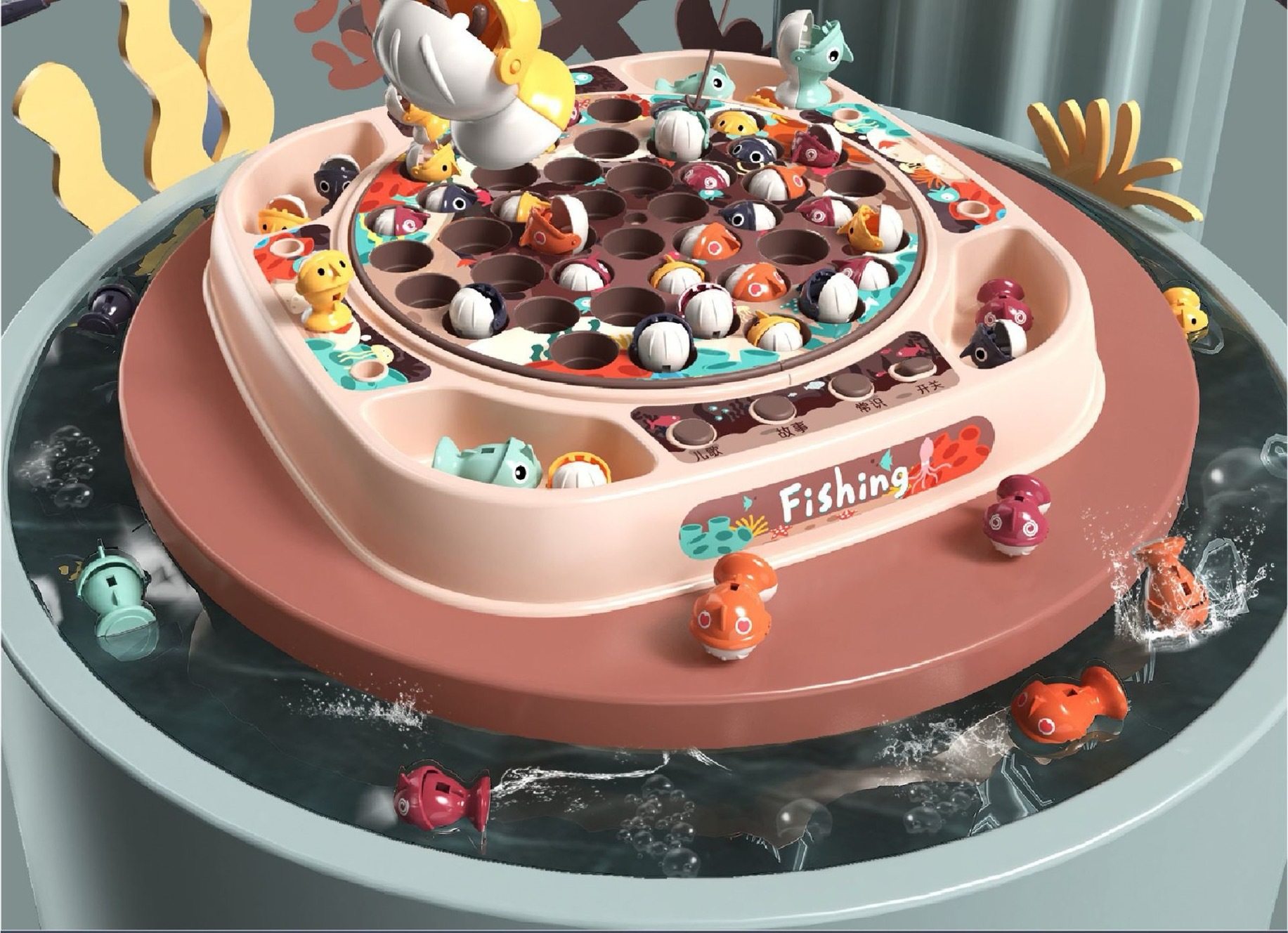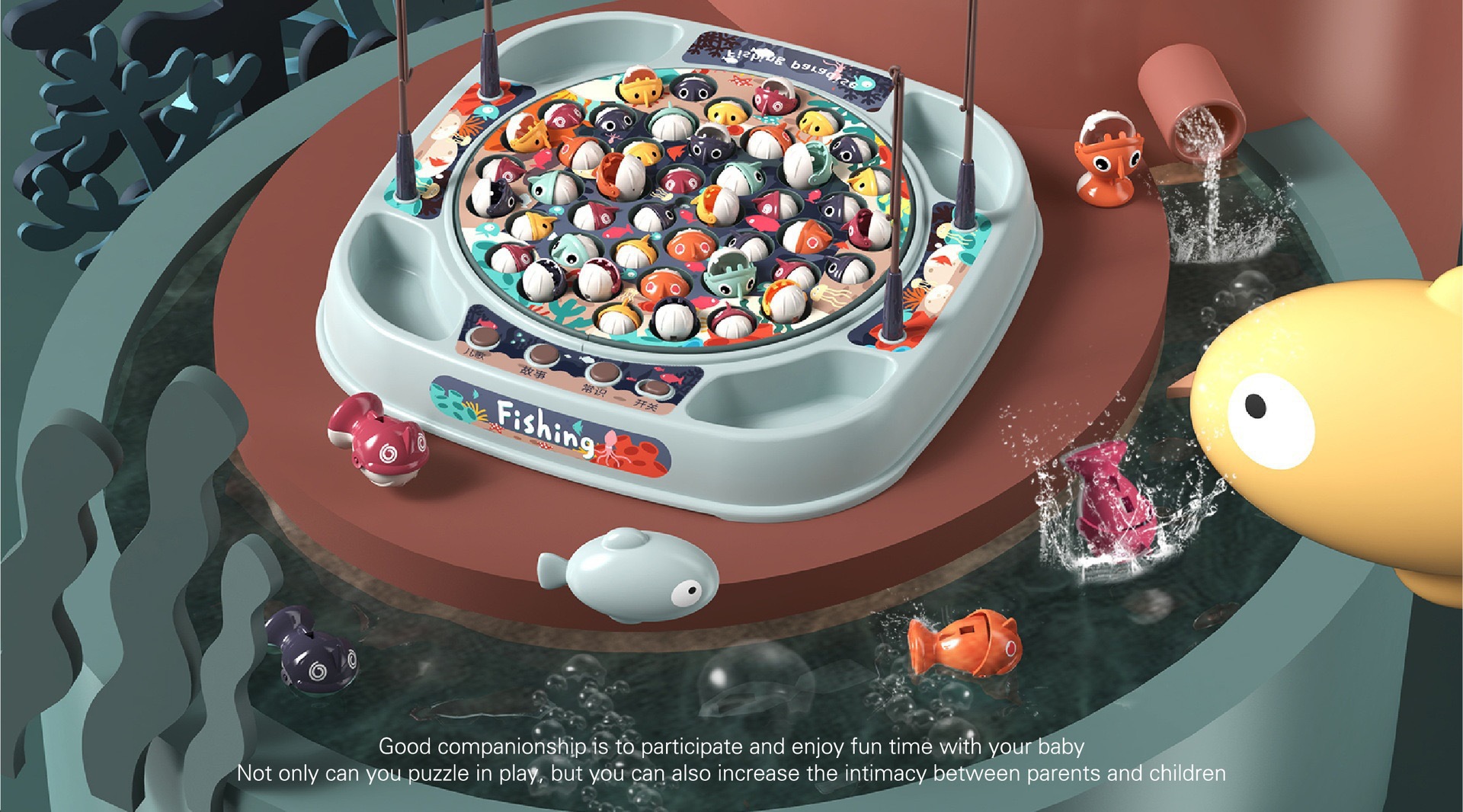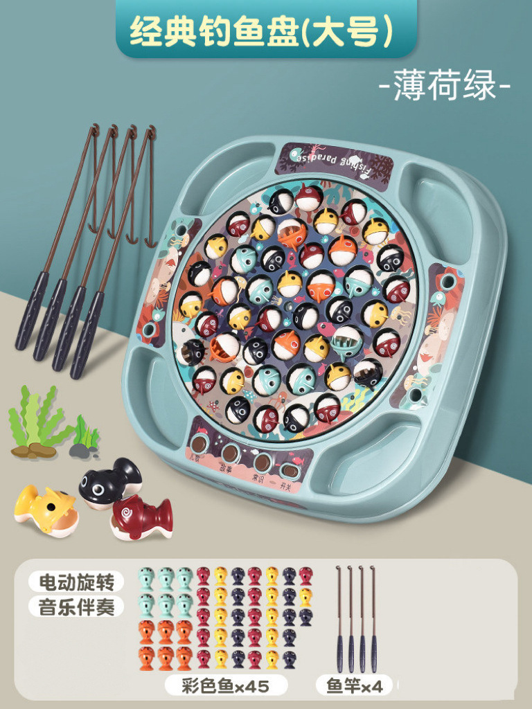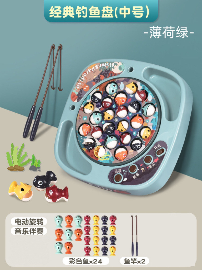 놀이 집 시뮬레이션 아기 낚시 국경 장난감 어린이 전기 회전 음악 조명 기능 부모-자식 상호 작용