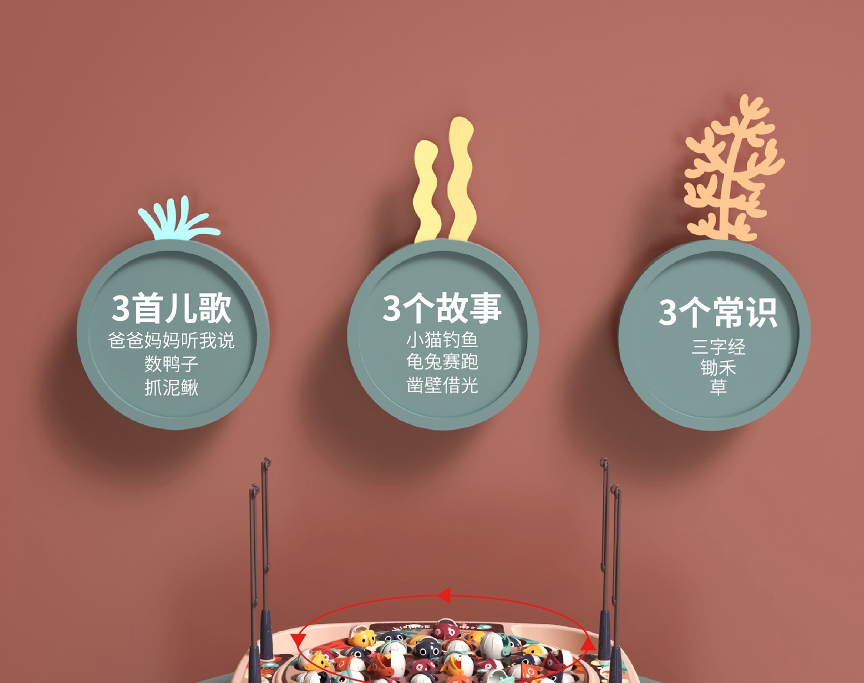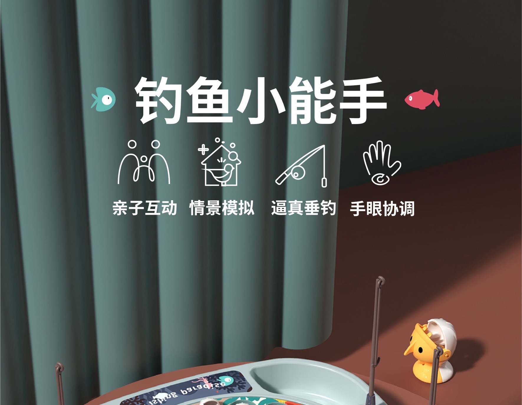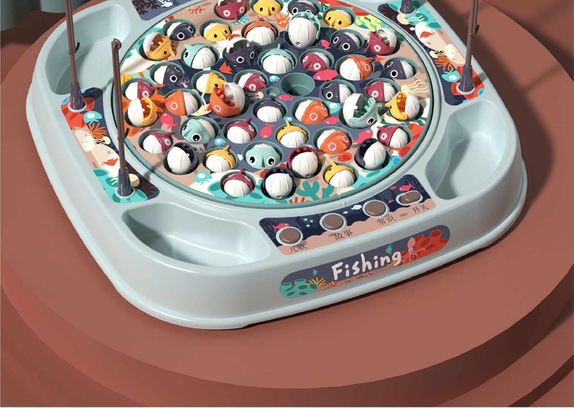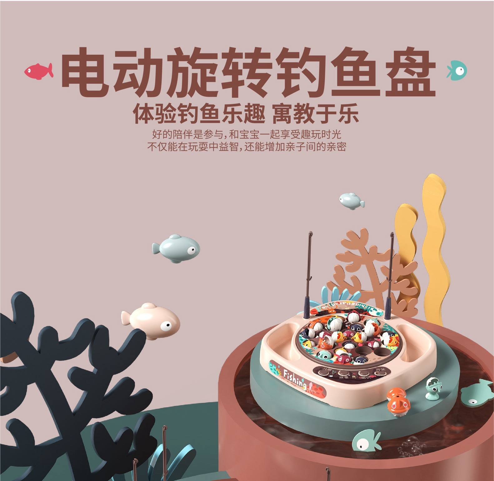 놀이 집 시뮬레이션 아기 낚시 국경 장난감 어린이 전기 회전 음악 조명 기능 부모-자식 상호 작용
