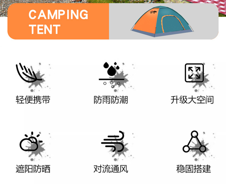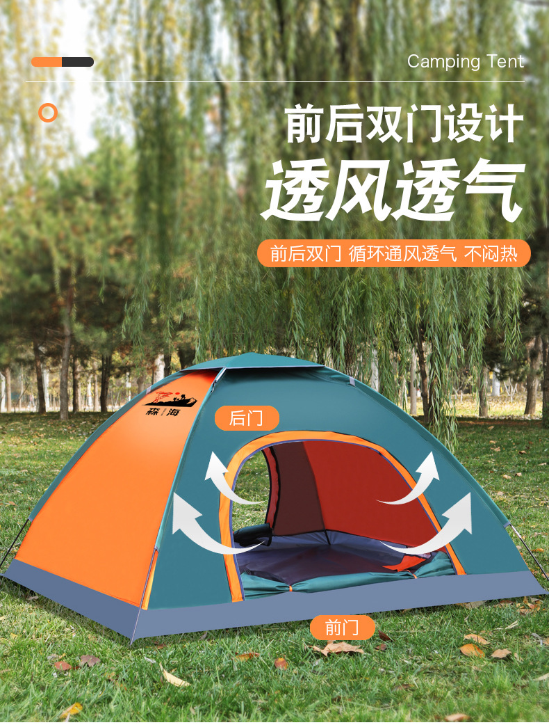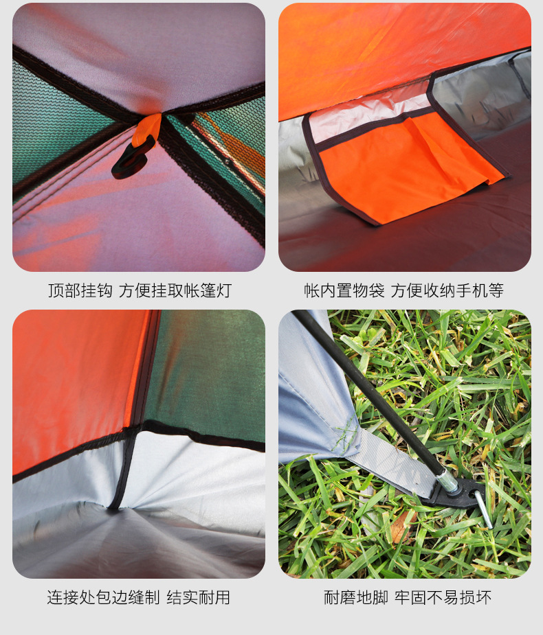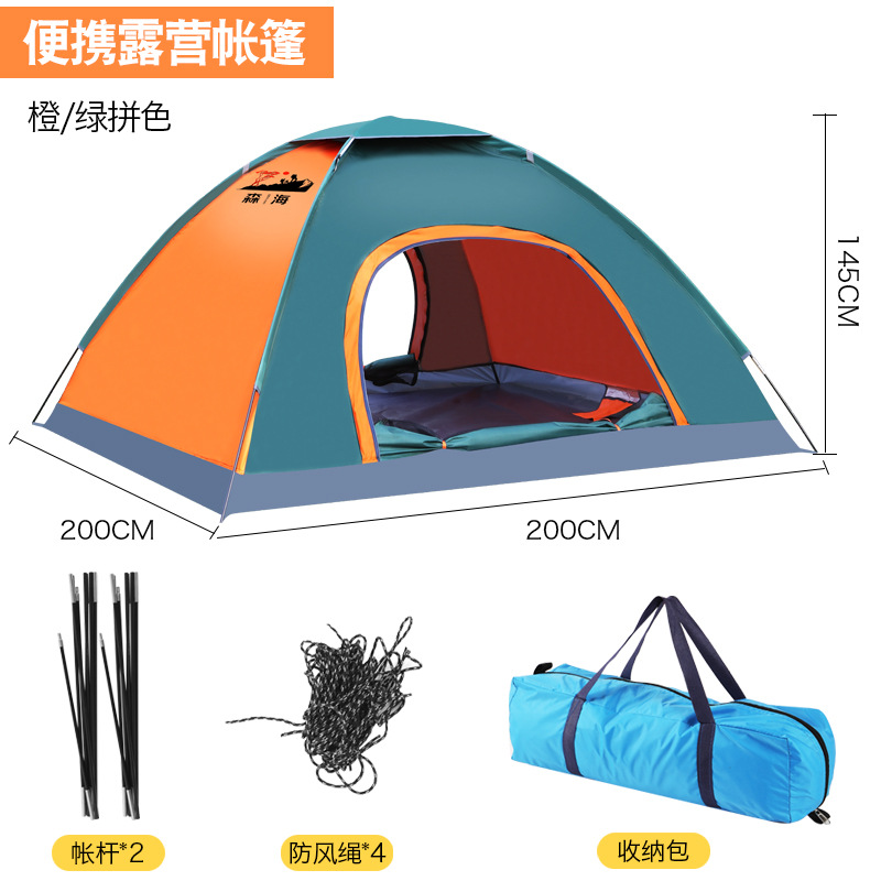 • 주황색과 녹색 이중 색상 매칭 수동 텐트 + 액세서리