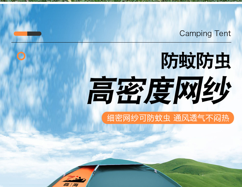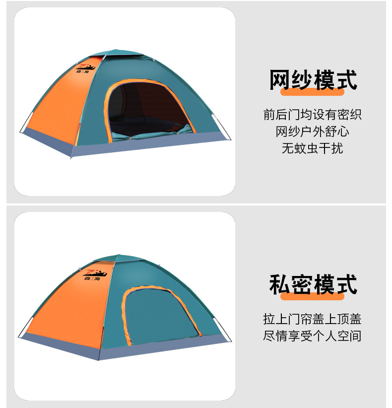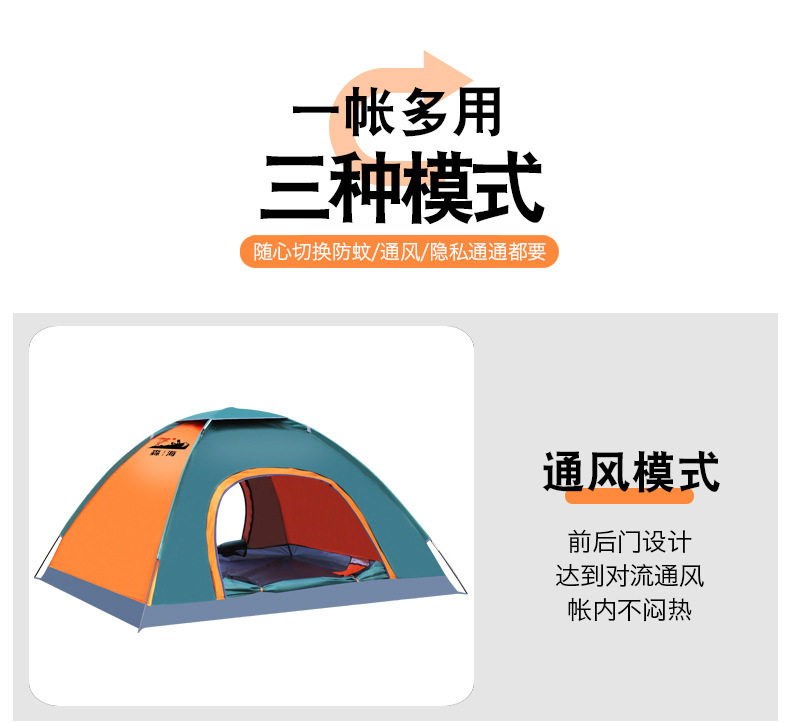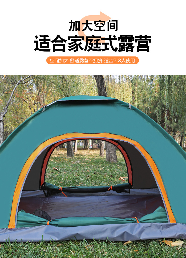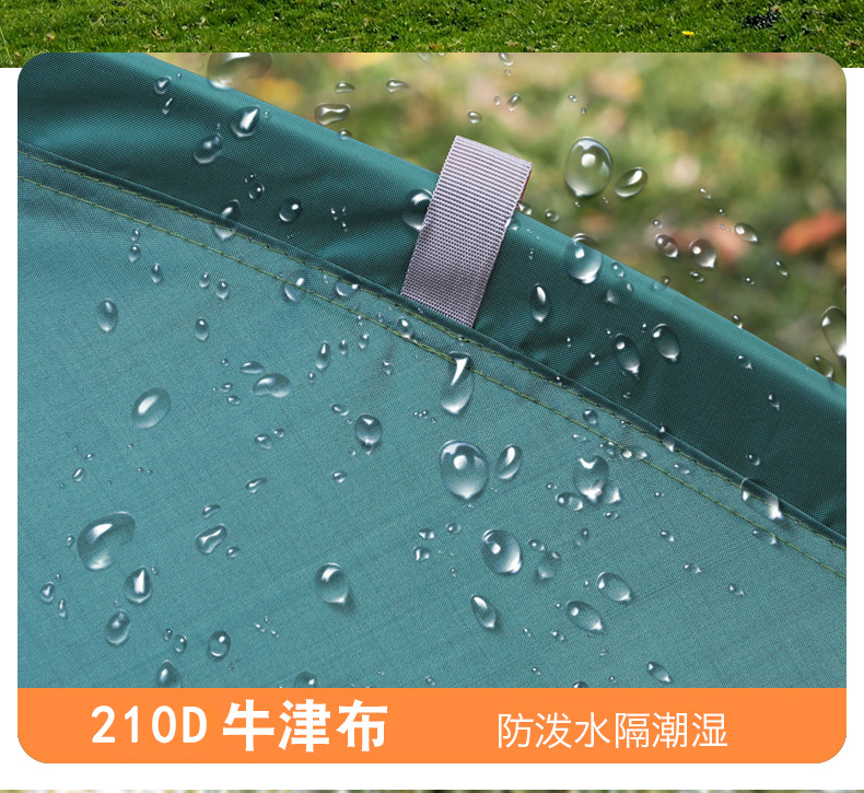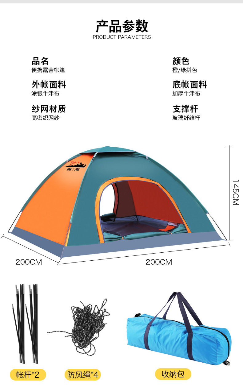 橙绿双拼色,尺寸200*200*160CM,可容纳3-4人,牛津布材质,重量2.1kg,包装尺寸55*13*13CM