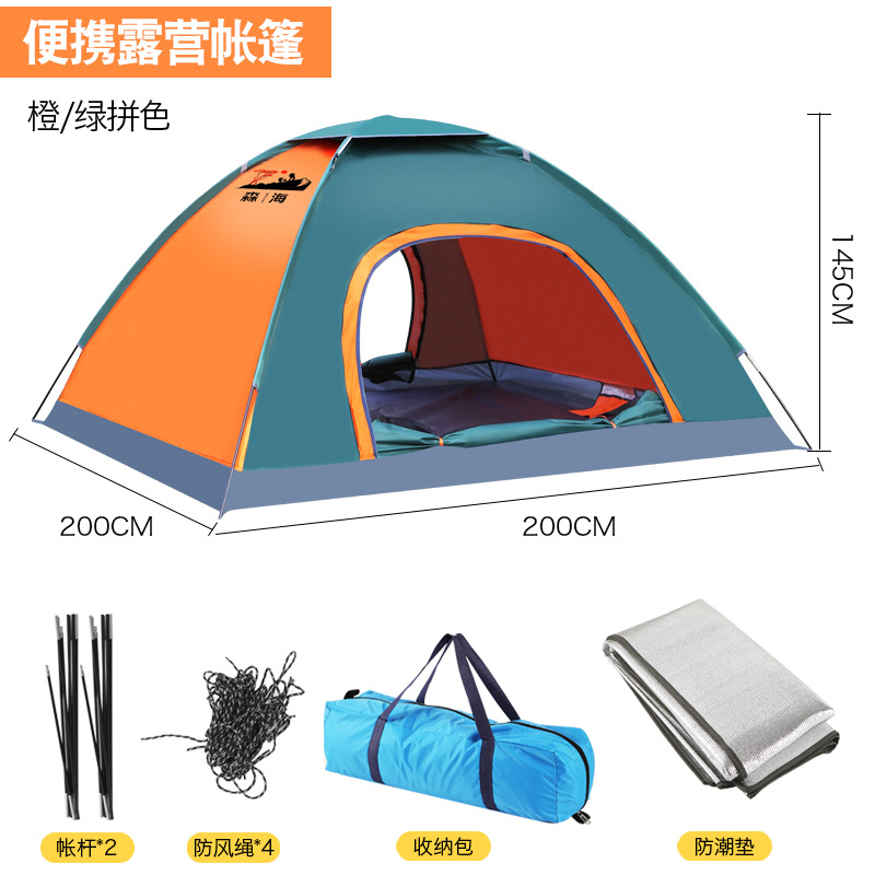 • 오렌지와 그린 더블 컬러 매칭 수동 텐트 + 액세서리 + 방습 매트
