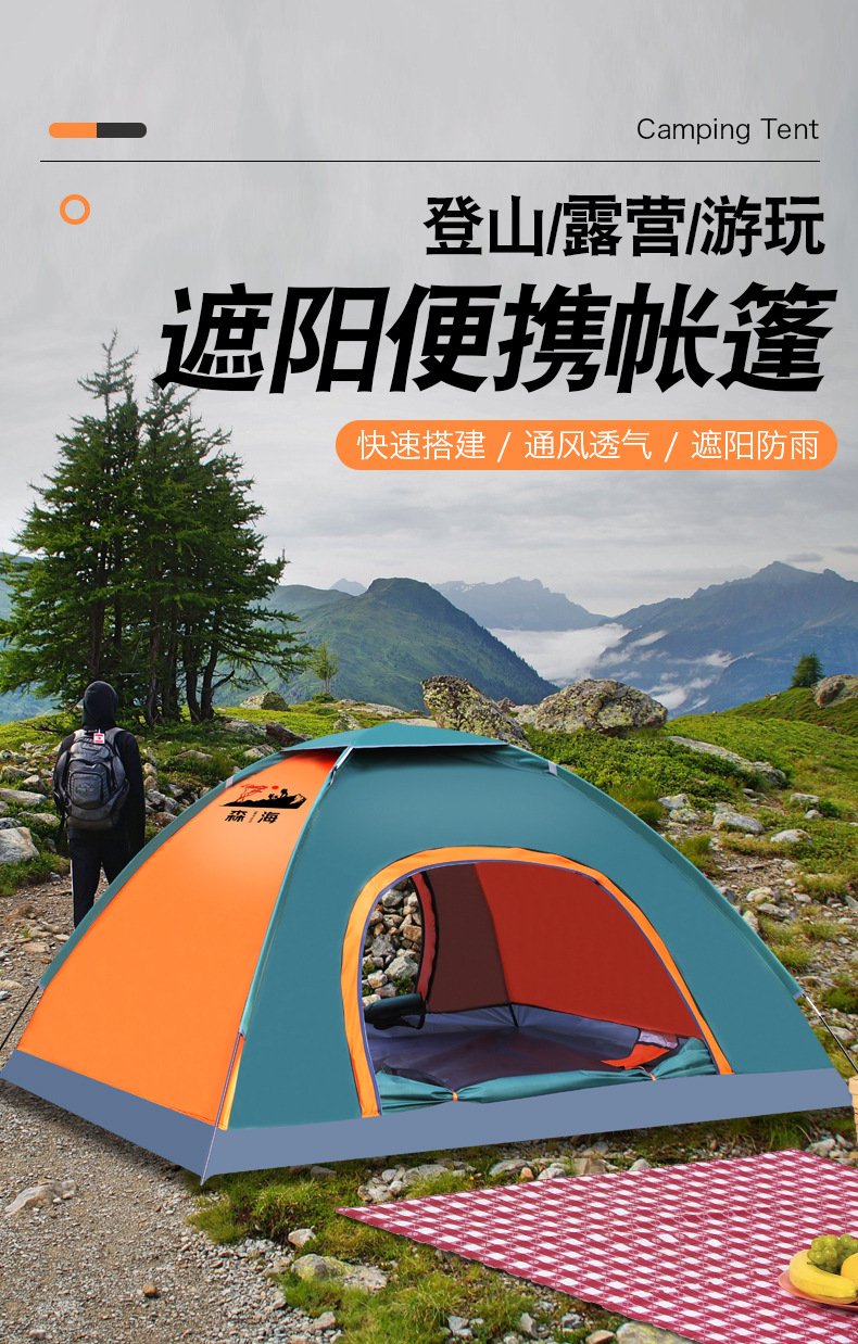 야외 텐트 3-4 명이 수동으로 텐트를 운반하기 쉬운 멀티 사람 캠핑 텐트 패딩 비방을 설치했습니다.스토어 가기