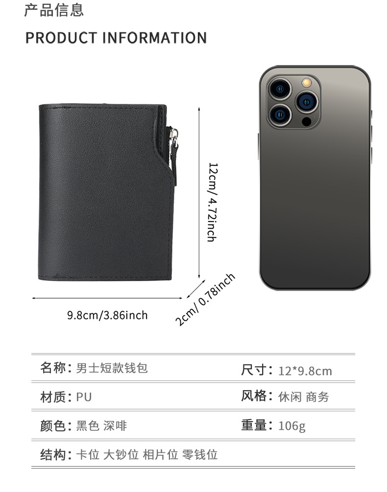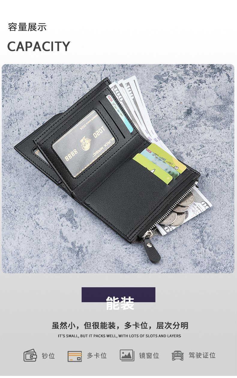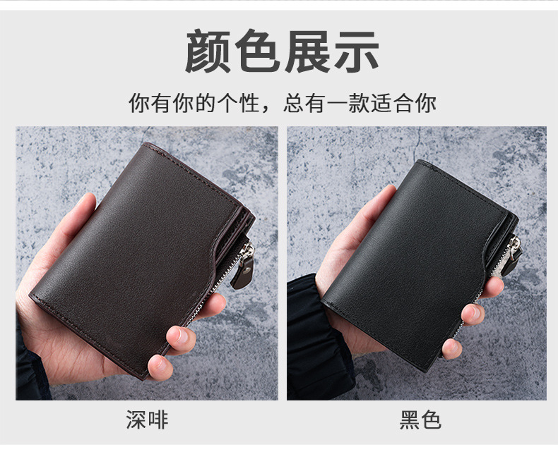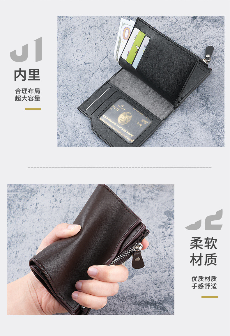 2025 새로운 남성 짧은 지갑 다기능 지퍼 가방 멀티 카드 유럽과 미국 ID 가방 도매 제조 업체 재고스토어 가기