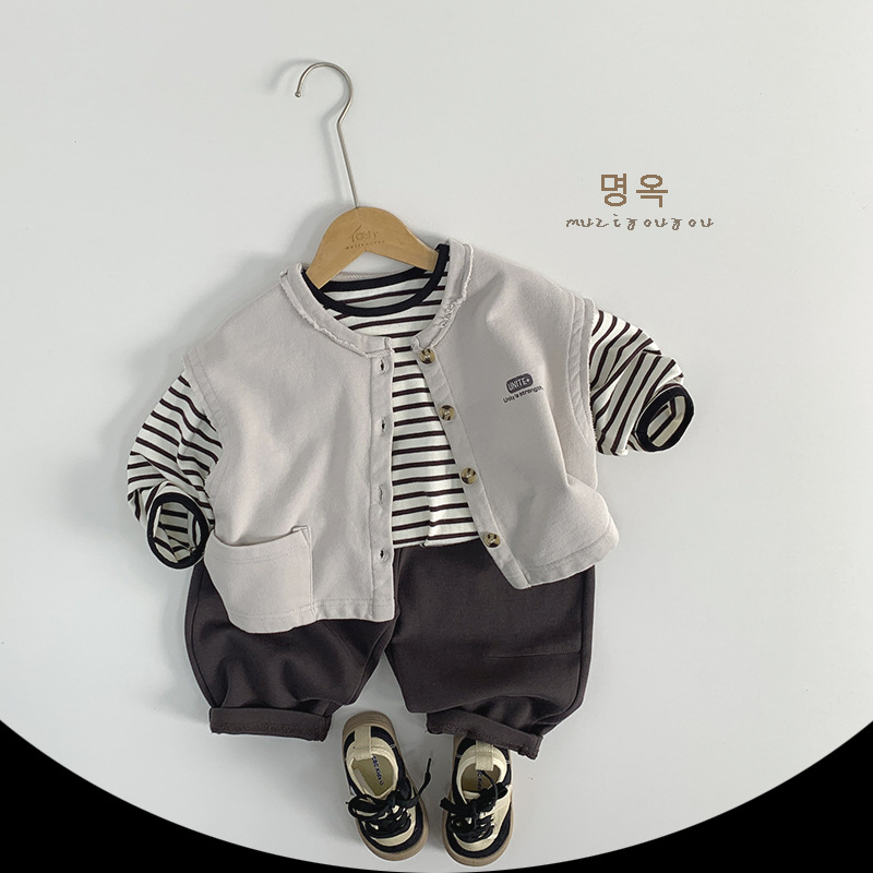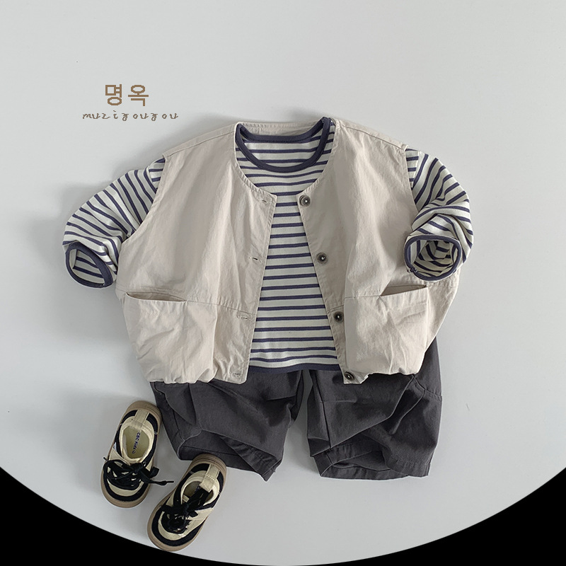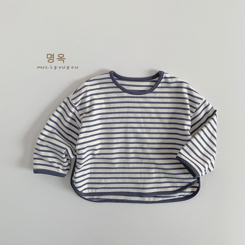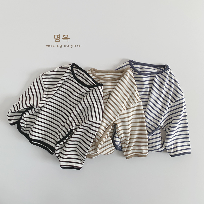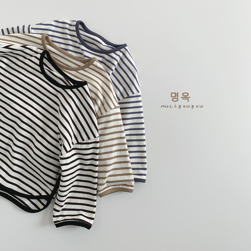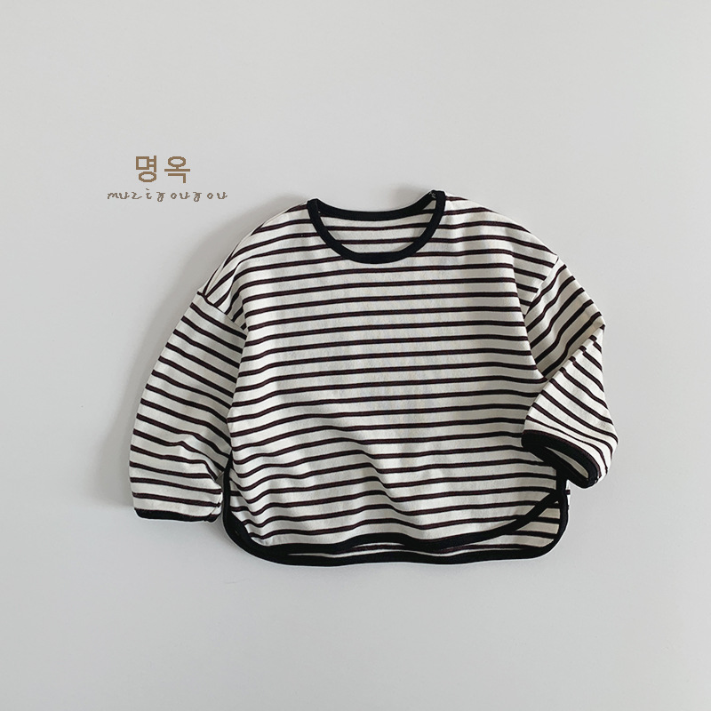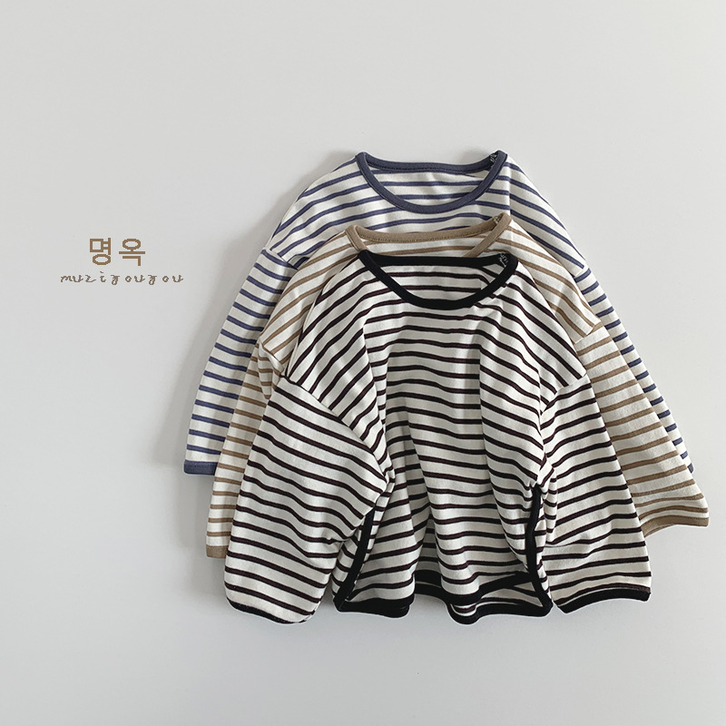 아동용 스트라이프 다용도 티셔츠 2026 봄 가을 신상 남아 여아 한국 스타일 캐주얼 상의 베이직 티셔츠 유아복스토어 가기