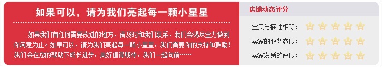 | (本店默认圆通、韵达快递,如需其他快递请联系客服) 本店为批发店铺,所有商品均不零售。 为避免不必要的争议,购物前请先认真阅读批发说明条款、商品属性及详情页内容,下单付款后即认同本店铺批发说明条款中所有内容。 一.店铺起批量多少 本店购满100元或满3件商品,即可享受批发价格。支持混批(只要总金额达到或总数量达到3件,单款数量不限,即可批发,颜色和规格都可以自选) 二.关于商品价格及包邮 小店薄利多销,概不议价,不包邮(官方活动除外),网站显示价格已经是批发价,根据亲们订购的数量,我们也分别设置了三个价格,达到什么数量给什么价格。请亲们不要把时间浪费在砍价上面,我们保证数量和质量,这个比什么都划算。 三.关于缺货 为了保证各位亲的愉快购物体验,不让缺货造成不良影响,我司目前已经准备了多个仓库备货,尽最大努力保证货源的稳定。但由于批发走量很大,偶尔可能会出现缺货的问题,一旦出现缺货问题,我们会在第一时间通知本人,征得您的同意后再进行处理。 四.关于运费 快递按重量收取运费,为了亲们下单方便,商品的重量和快递收费标准我们在后台已经设置好了,亲们拍下订单所显示的费用就是实际快递运费,急件可走顺丰速运。每家店铺合作的快递不一样,收费标准也不一样,因此没有可比性,请各位亲们能够谅解。 五.关于发货 本店承诺所有下单付款的订单48小时内发货。由于订单量较大,发货顺序会按照下单时间的先后顺序发出,敬请谅解!(店铺做活动的期间订单量会剧增,需要对发货时间进行调整,届时会发布公告,或咨询客服,无特殊情况都会按期发货) 六.关于快递物流签收 货物在签收时请务必保证由本人亲自签收,当面检查外包装是否破损、少货或包装有被打开过的痕迹,如发现以上情况可直接拒收,并及时与我们的客服人员联系。我们会在第一时间给您处理,直到您满意为止。如不是本人签收,没有当面检查,本店不予处理。这涉及与快递公司的交涉问题,希望各位亲能够谅解。 七.关于色差 本店所有商品均为店主亲自实拍,尽可能真实再现实物细节,让大家所见即所得。但由于显示器分辨率不同、灯光等客观因素,数码图片或多或少都会存在一些色差。我们尽量在摄影过程中呈现实物真实颜色,但部分商品存在一些色差也处于合理范畴之内,希望各位亲能理解。 八.上门取货 本店支持本地客户上门取货。上门取货的客户需要在网站上面选货下单付款,仓库货配好货后电话通知客户上门自提,由于场地因素,暂时不接受上门选货,谢谢大家的配合。 |