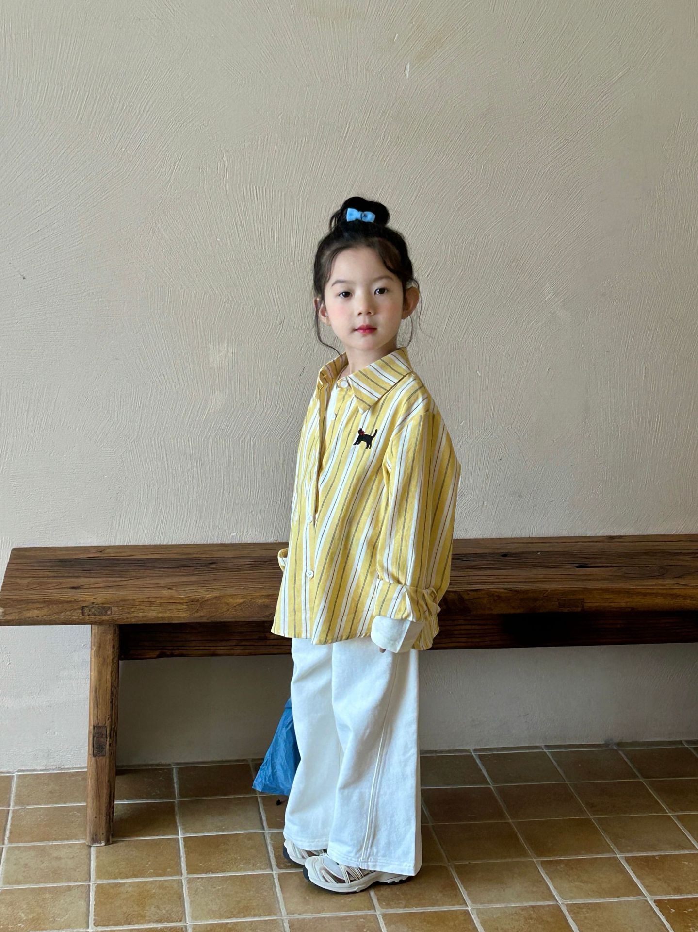 어린이 셔츠 2025 봄 새 어린이 2 ~ 7 세 한국 줄무늬 셔츠 소녀 긴 소매베이스 셔츠 트렌디스토어 가기