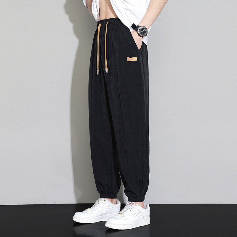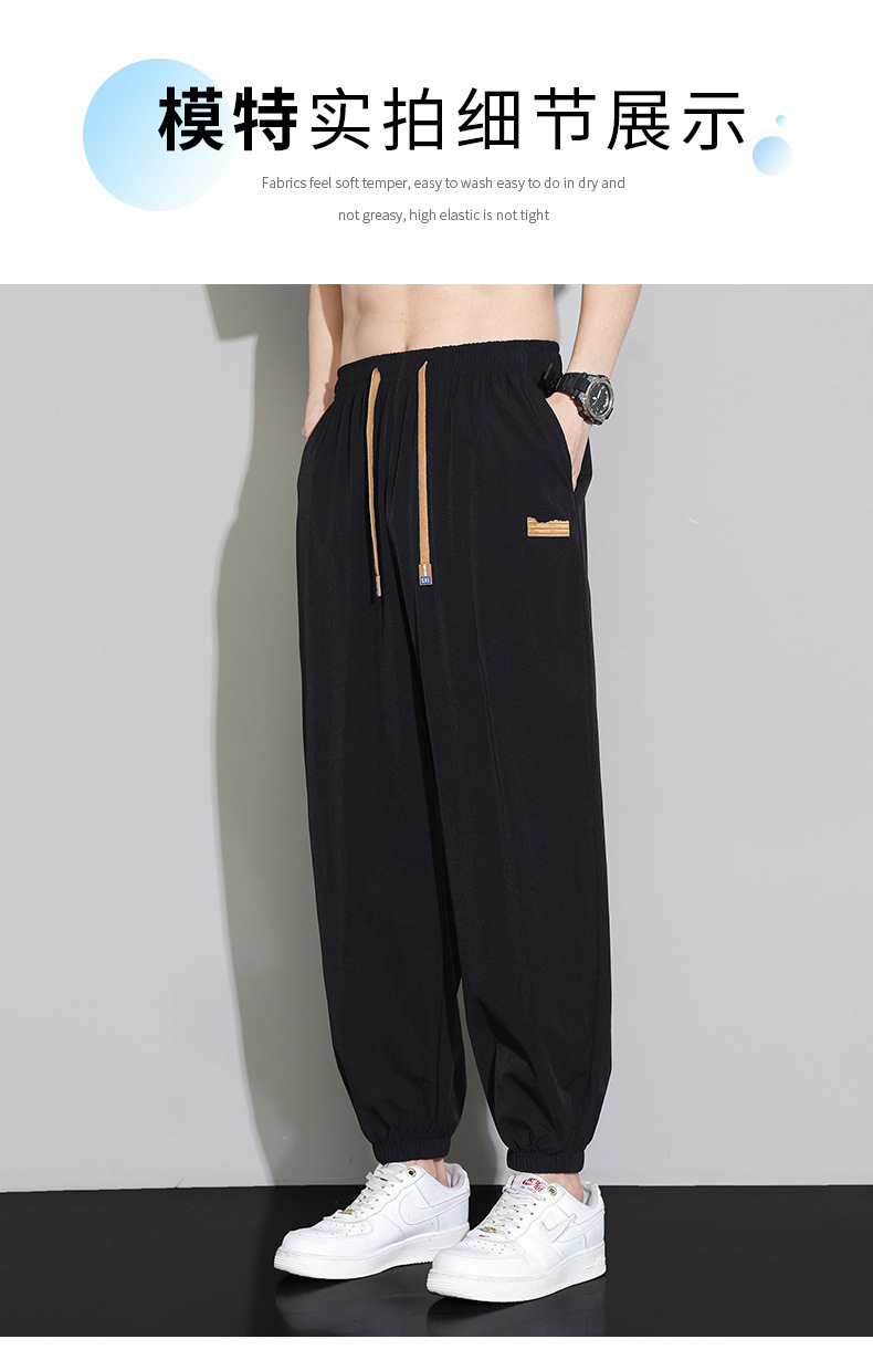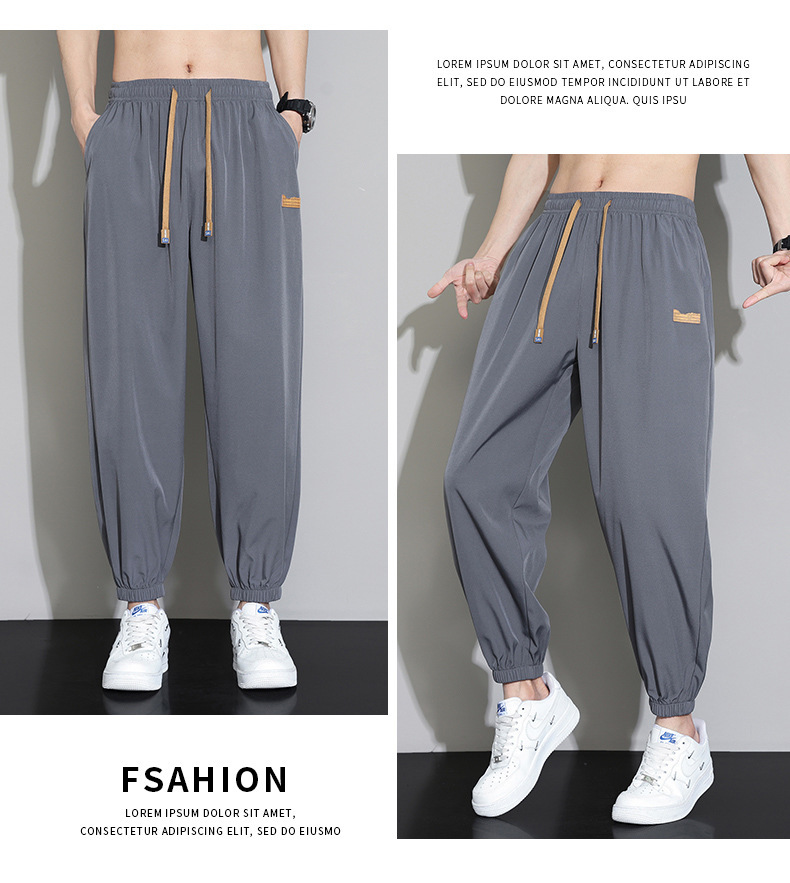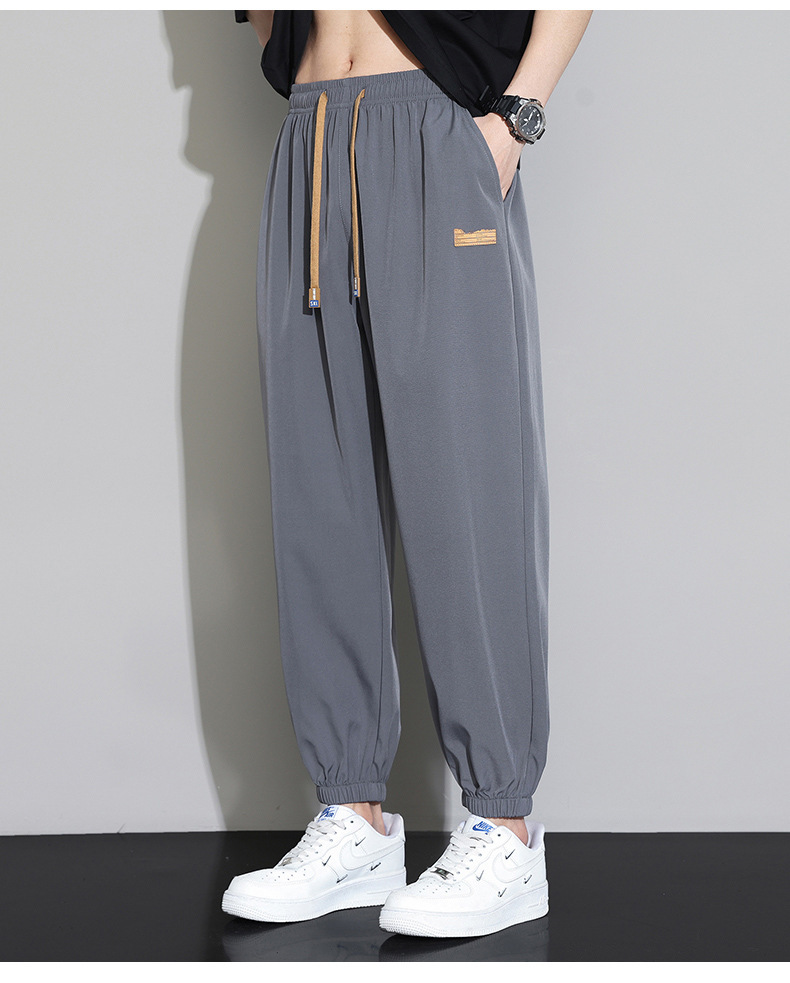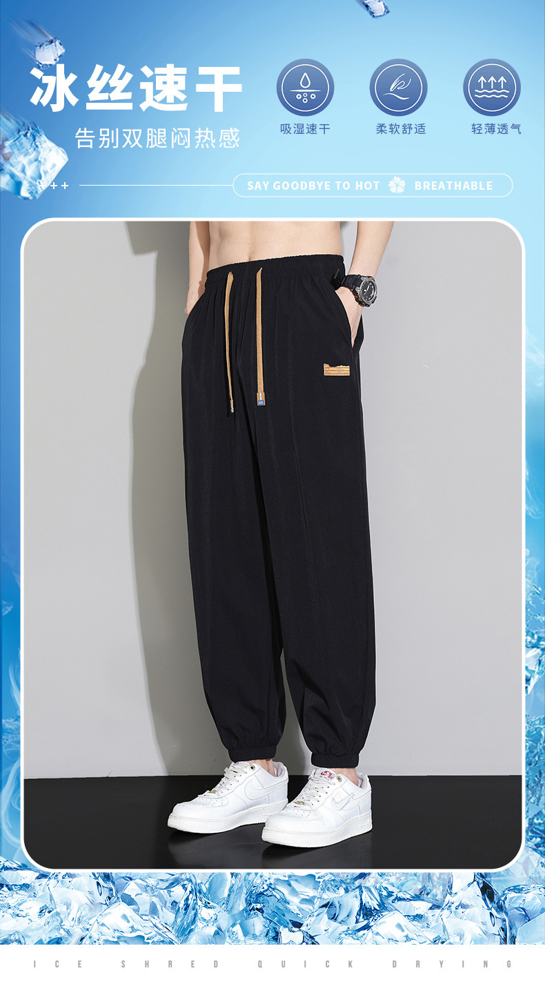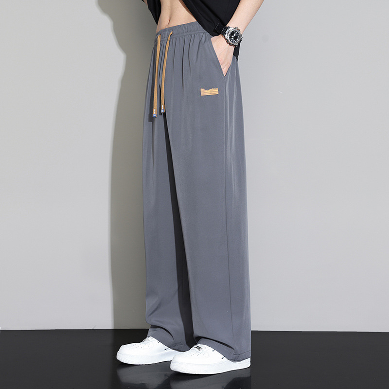 아이스 실크 바지 남자 여름 얇은 느슨한 스포츠 소년 빠른 건조 와이드 레그 바지 남자 다리 캐주얼 바지스토어 가기