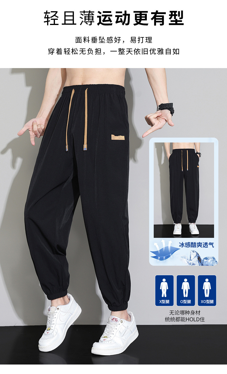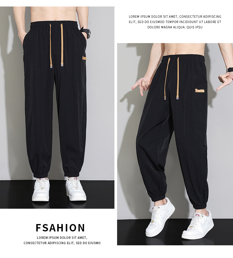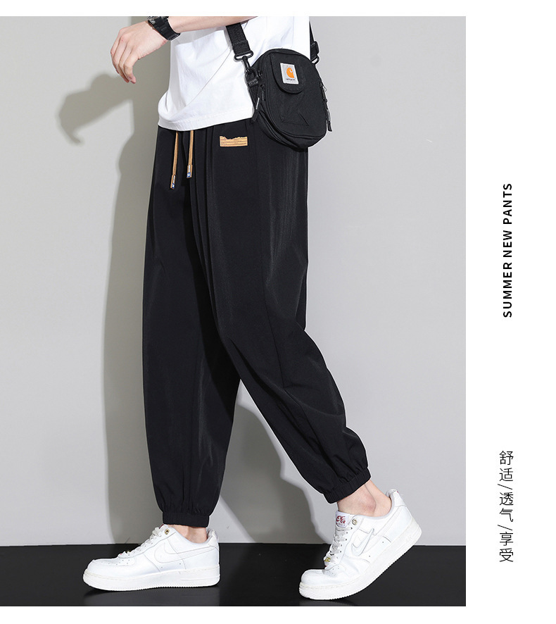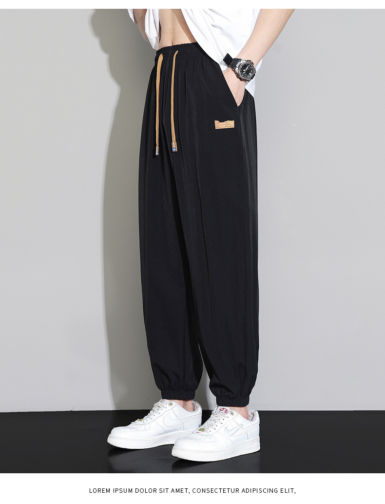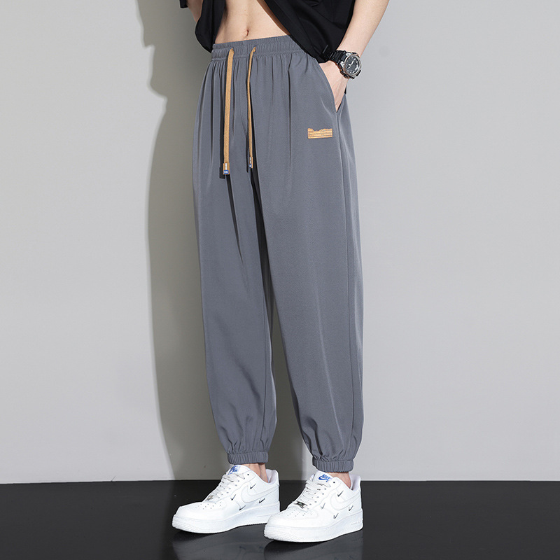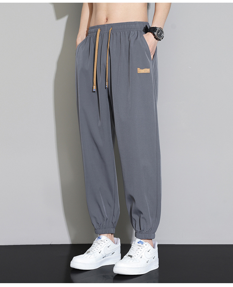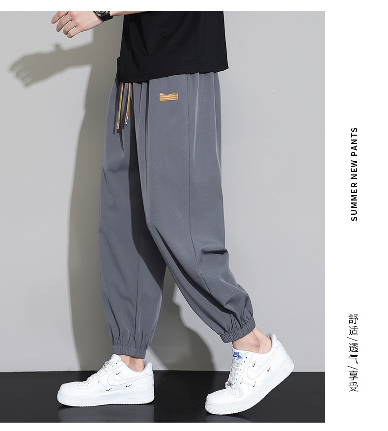 아이스 실크 바지 남자 여름 얇은 느슨한 스포츠 소년 빠른 건조 와이드 레그 바지 남자 다리 캐주얼 바지스토어 가기