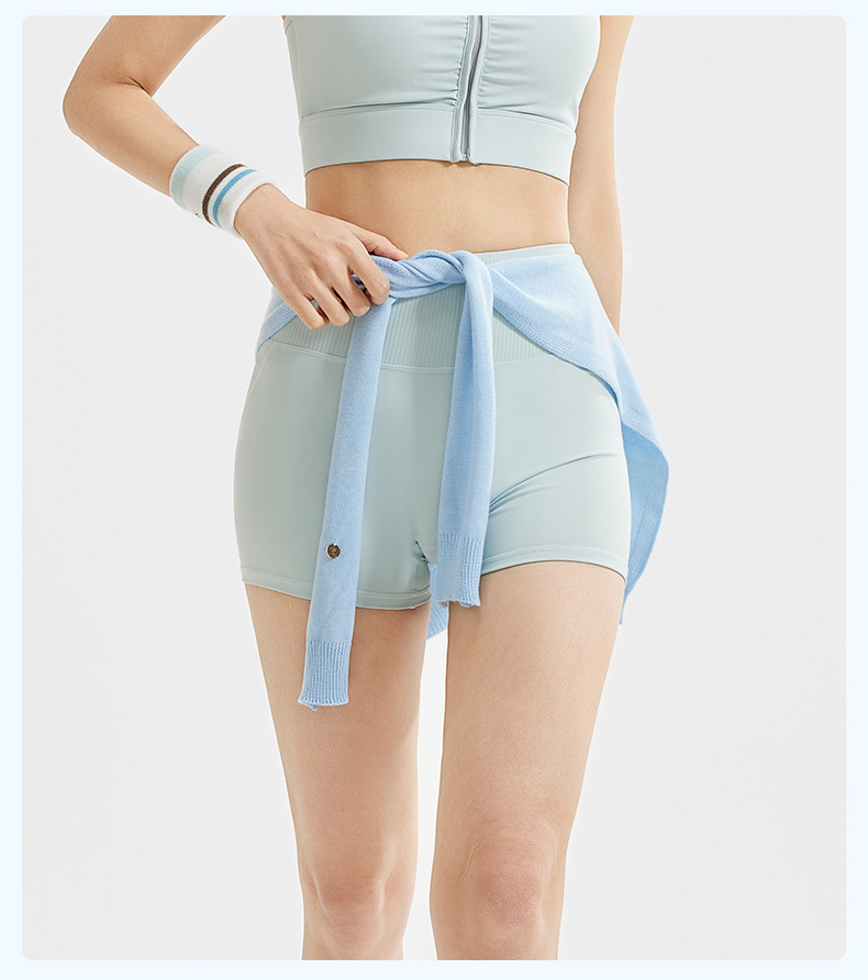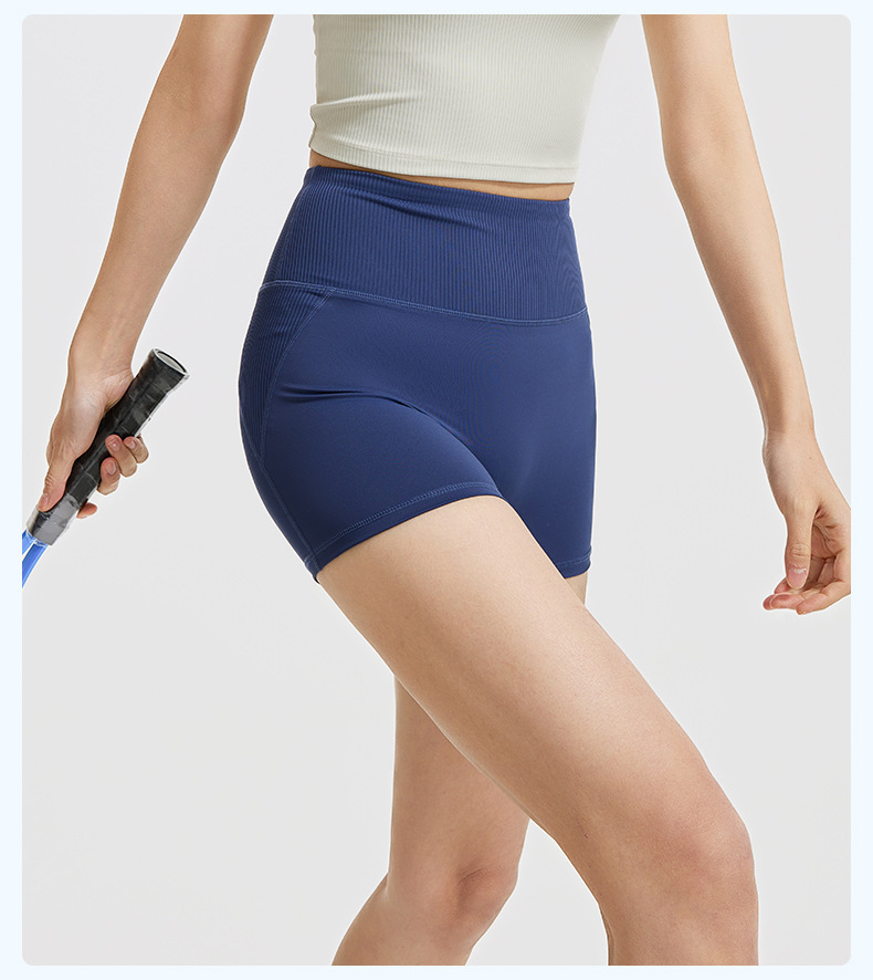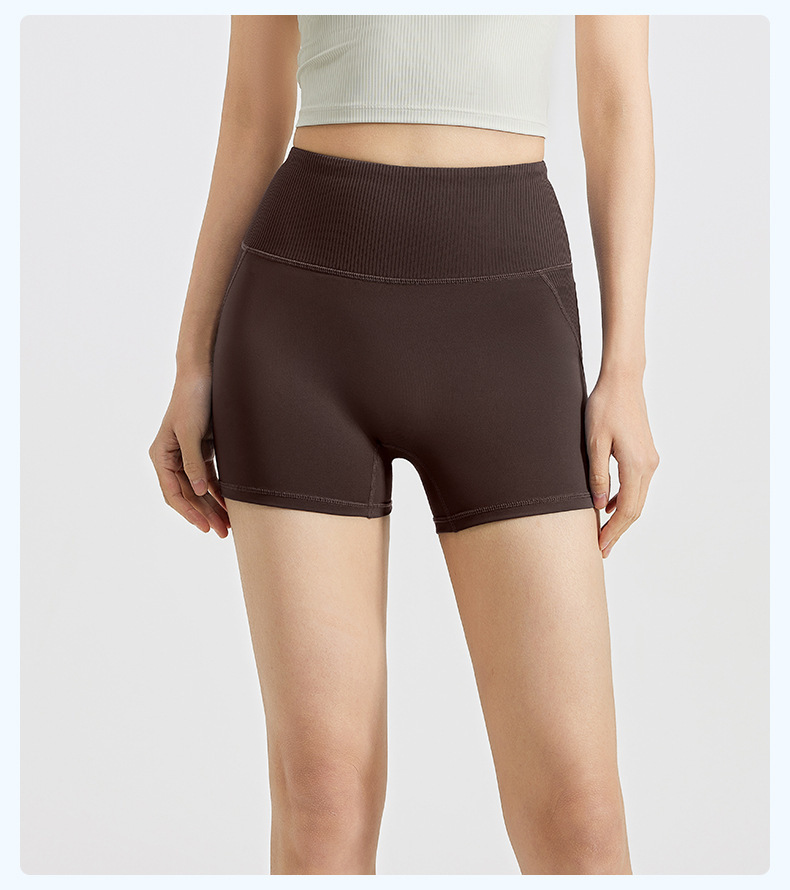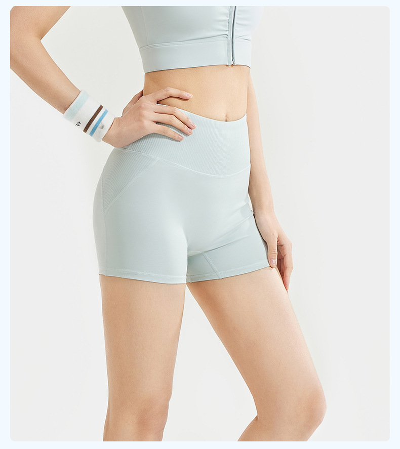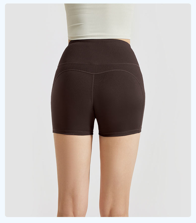 이른 봄 새로운 복숭아 줄무늬 더블 쌍 당황하지 않는 라인 스포츠 반바지 여성을위한 높은 허리 통기성 모양의 마크 요가 바지 없음