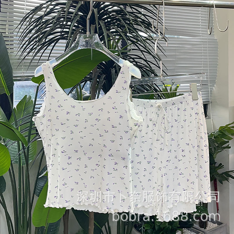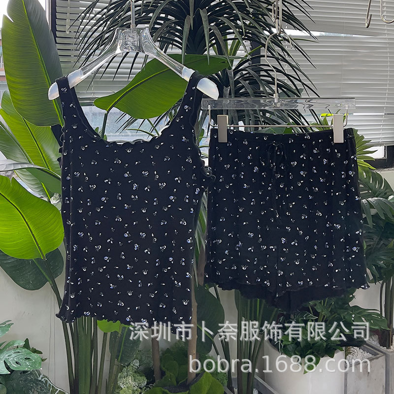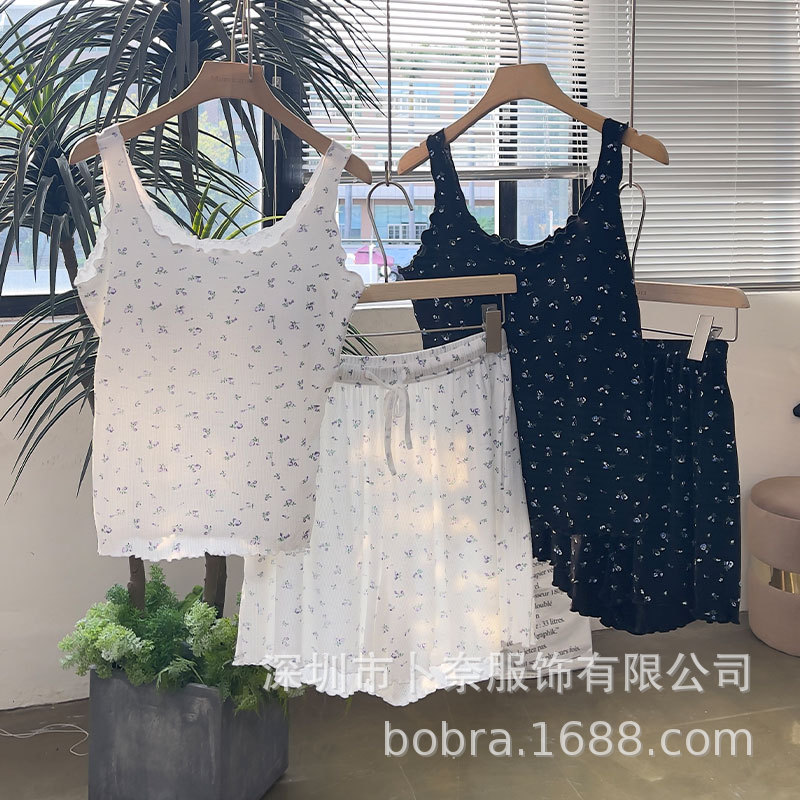 여름 오리지널 새 작은 꽃 슬링 반바지 홈 의류 잠옷 투피스 세트 세트스토어 가기