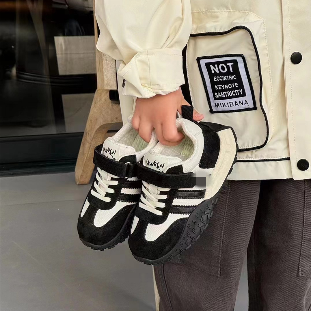 정품 가죽 어린이 운동화 2025 봄과 가을 새 소년 포레스트 검프 아버지 신발 여자 도덕 훈련 신발 아기 신발