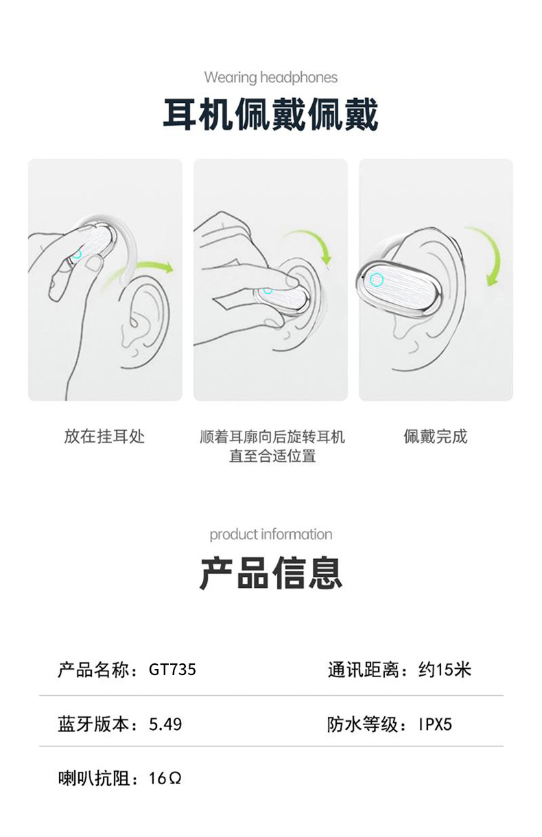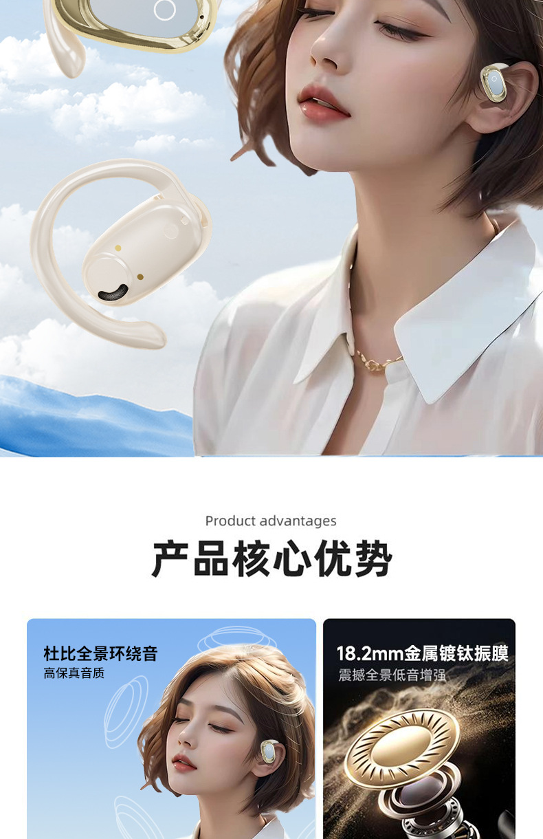 새로운 ows 귀걸이형 무선 블루투스 이어폰, 매우 긴 배터리 수명, 오픈형 스포츠 이어후크형, 고음질스토어 가기