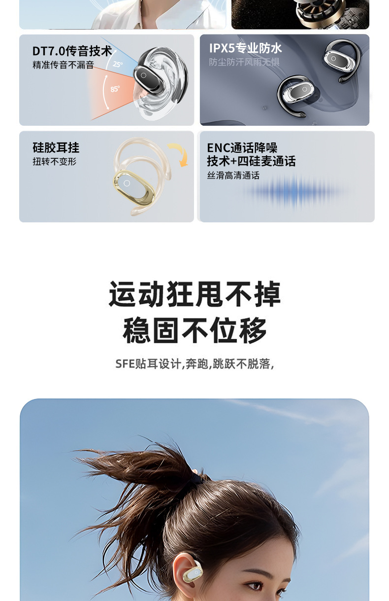 새로운 ows 귀걸이형 무선 블루투스 이어폰, 매우 긴 배터리 수명, 오픈형 스포츠 이어후크형, 고음질