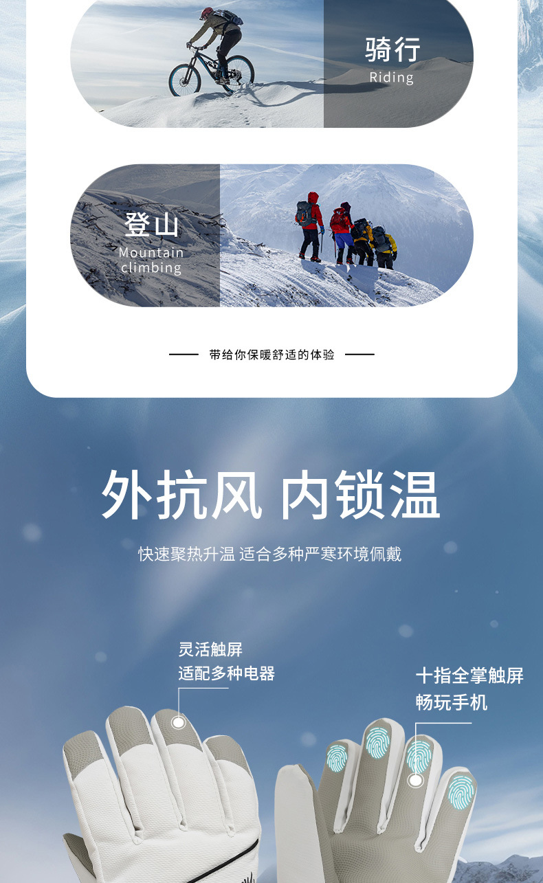국경을 넘는 전문 스키 장갑 공장 겨울용 터치스크린 남녀 공용 사이클링 특수 두꺼운 벨벳 방수 보온 장갑