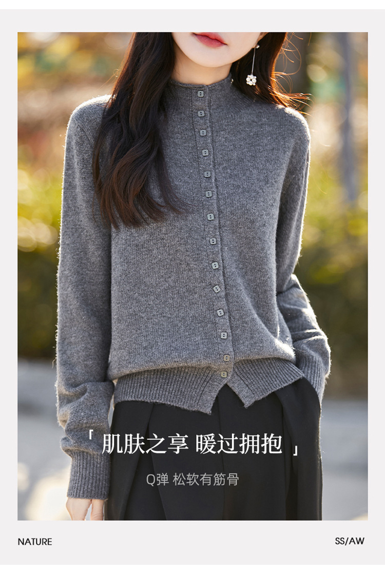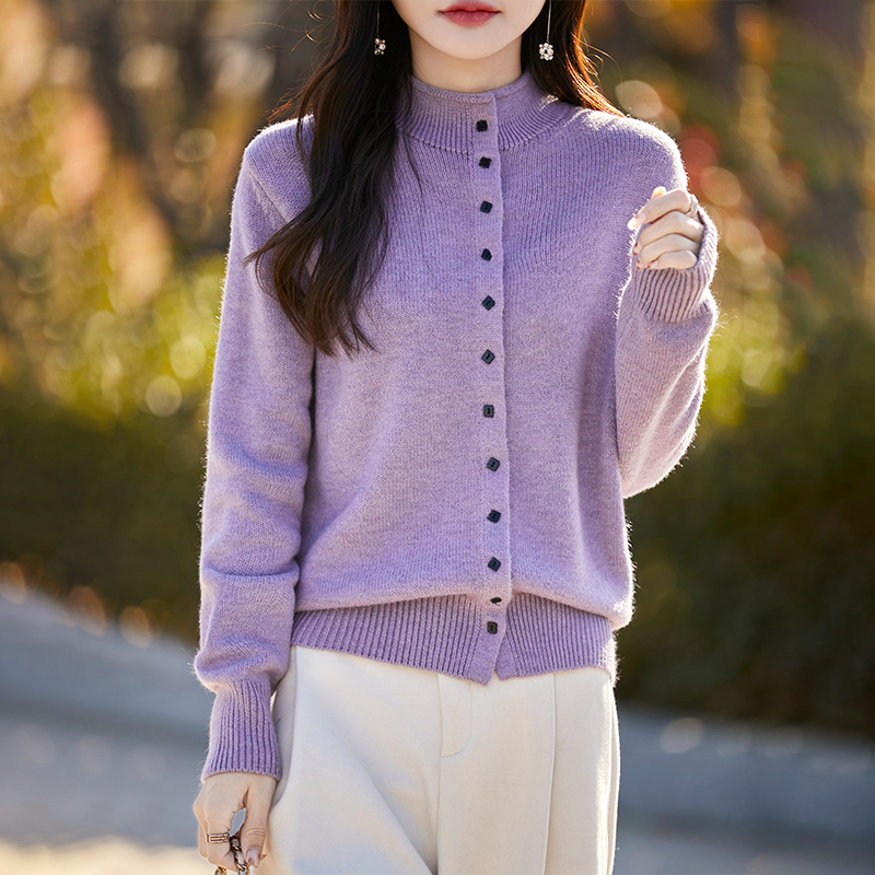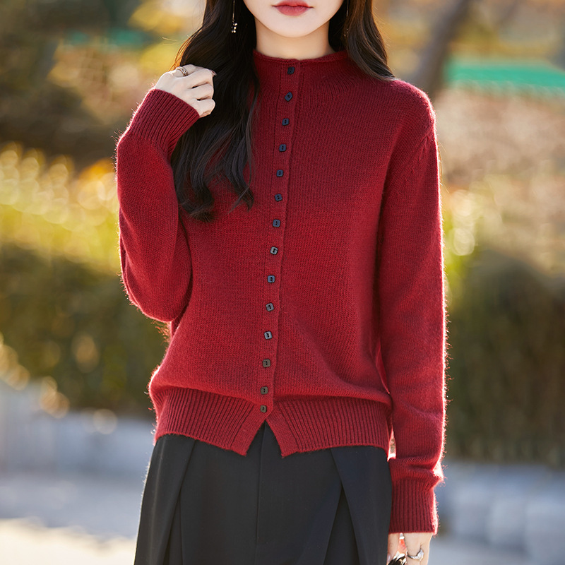 2025 가을 겨울 신상 여성 니트 가디건, 하프 터틀넥 멀티 버튼 스웨터 코트, 베이스 레이어 또는 아우터웨어 스웨터 탑 가디건