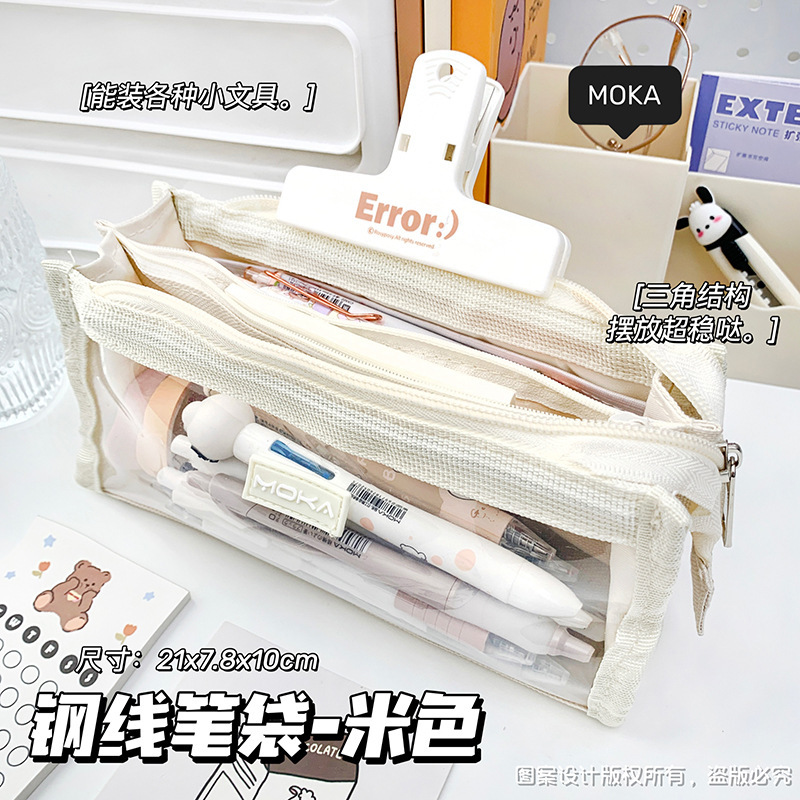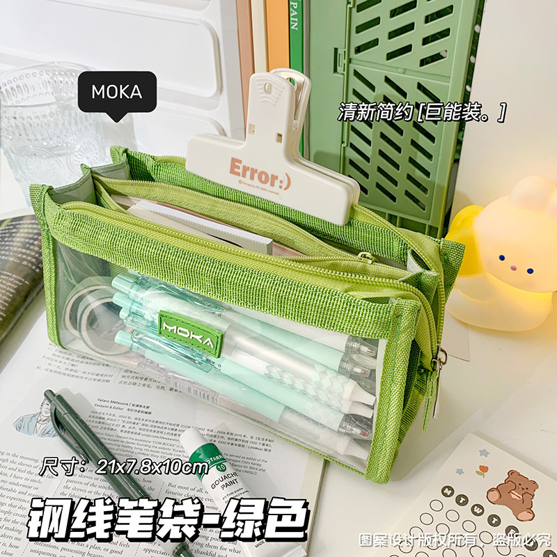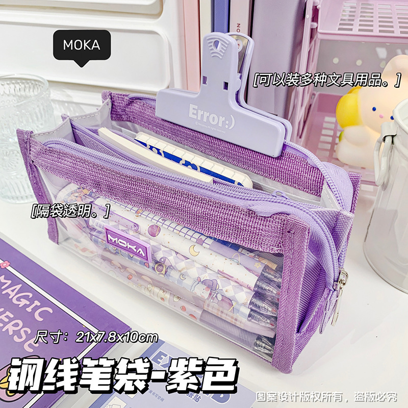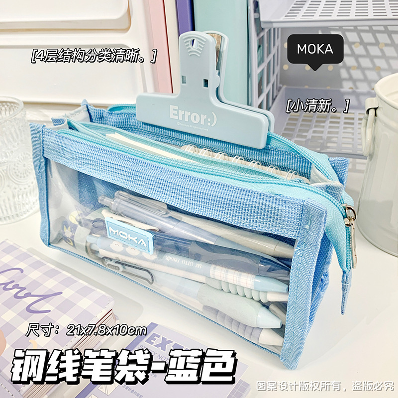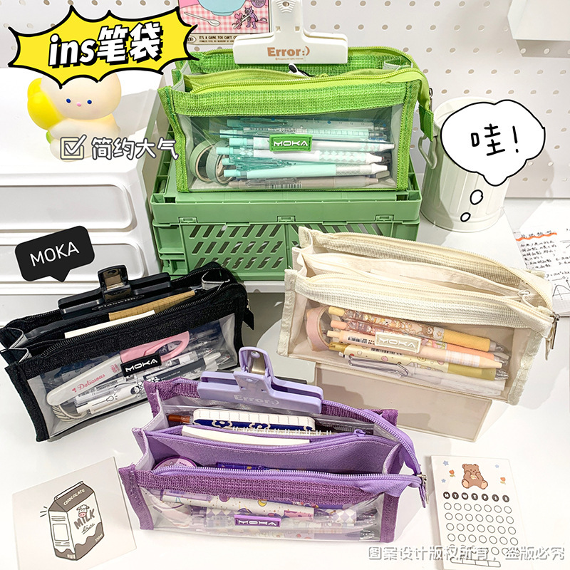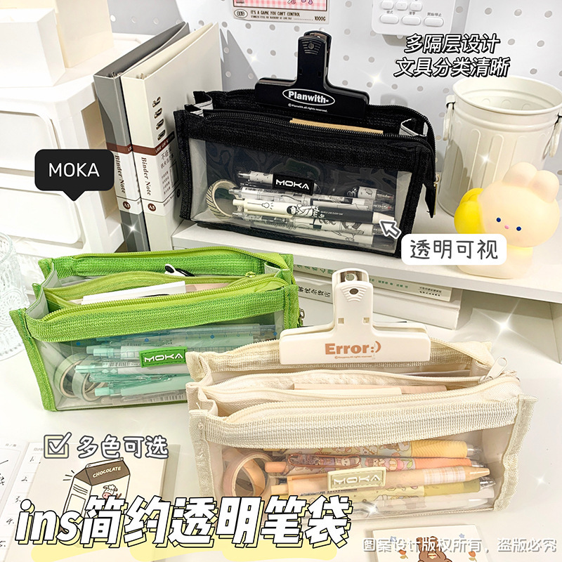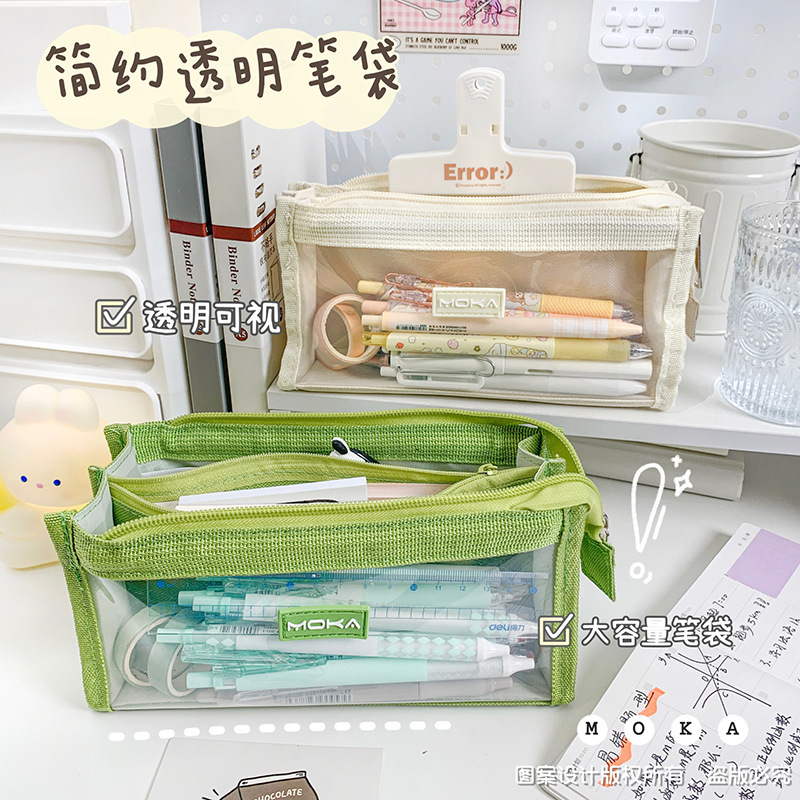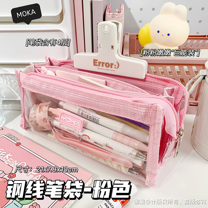 간단한 투명 멀티 레이어 연필 케이스 초등학교 학생 높은 색상 가치 Ins 스타일 솔리드 컬러 4 층 대용량 연필 문구 상자