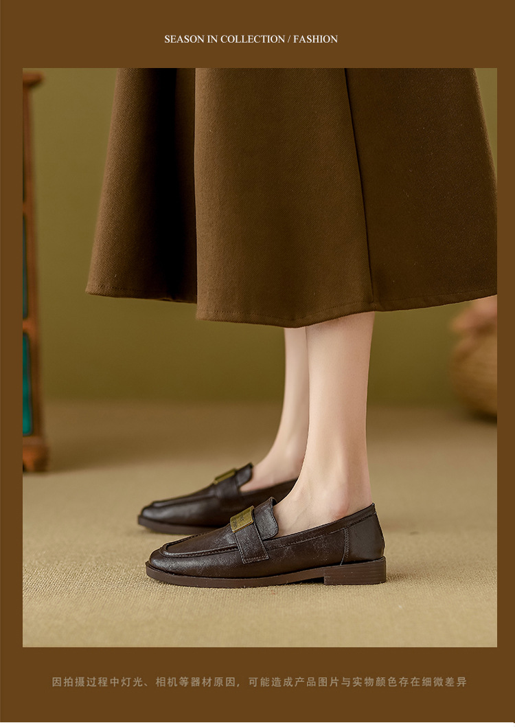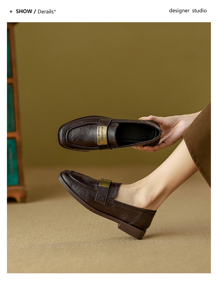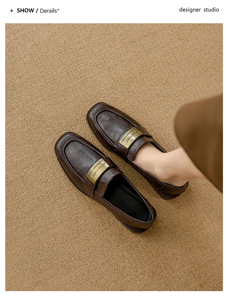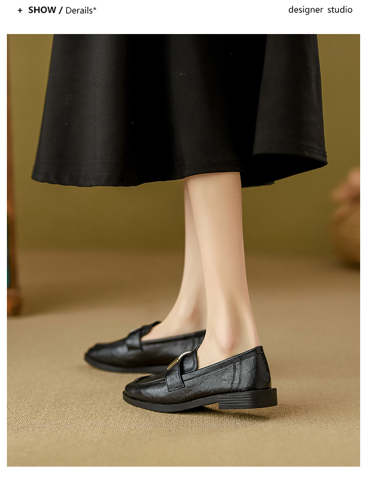 플랫 소프트 가죽 구두, 여성용 레트로 영국풍 로퍼, 큰 사이즈 여성화 35-42 D스토어 가기