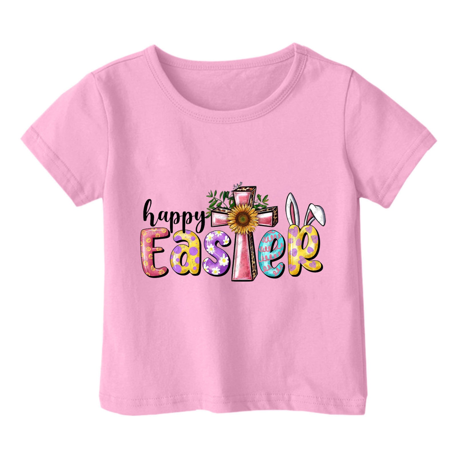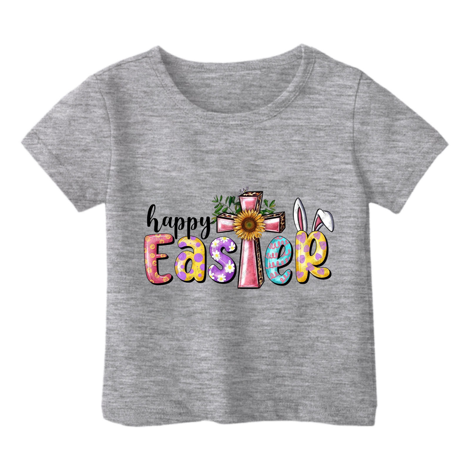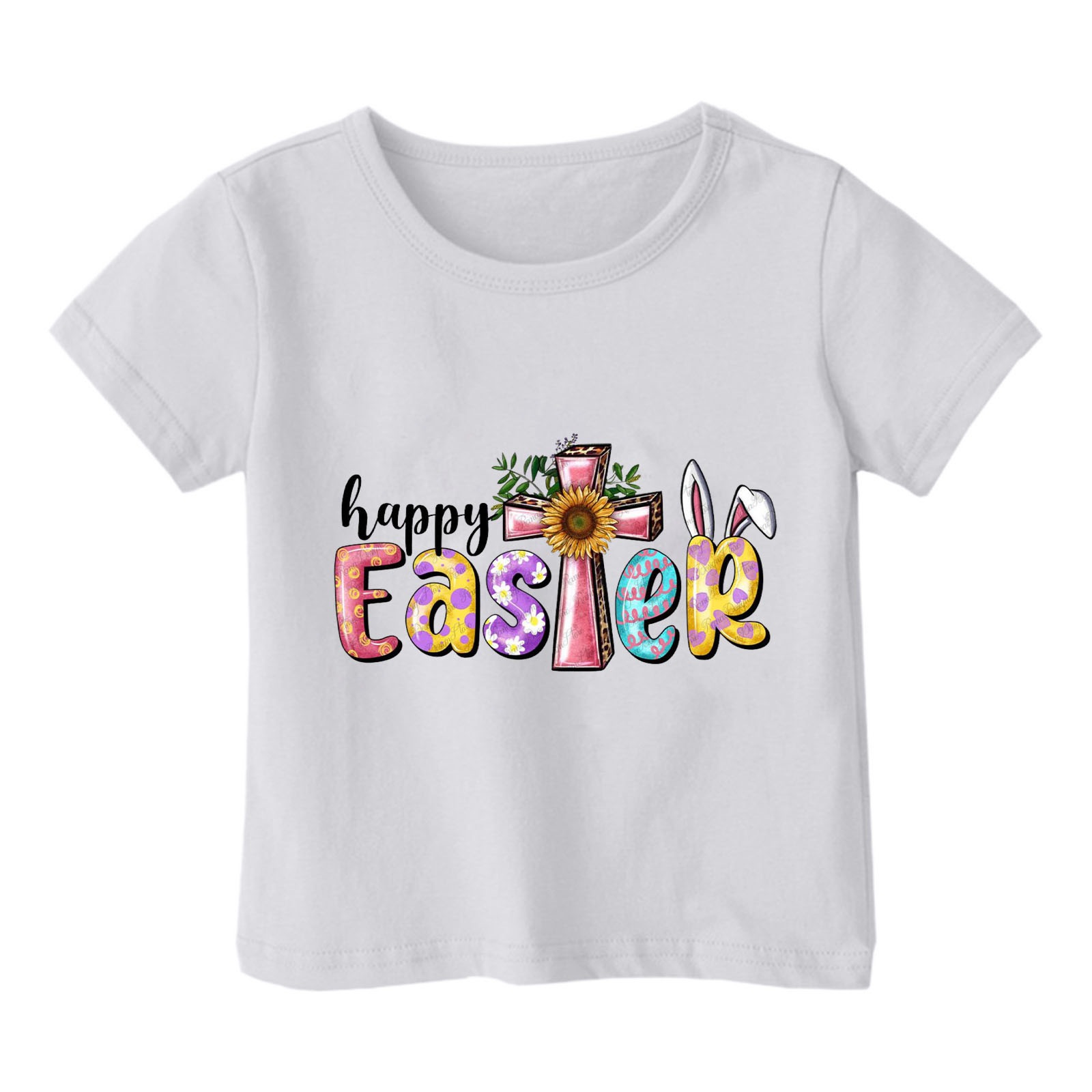 2024 크로스 보더 귀여운 프린트 부활절 반팔 아동용 탑 여름 루즈 캐주얼 트렌디 아동용 티셔츠