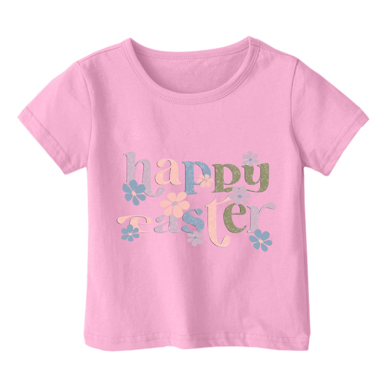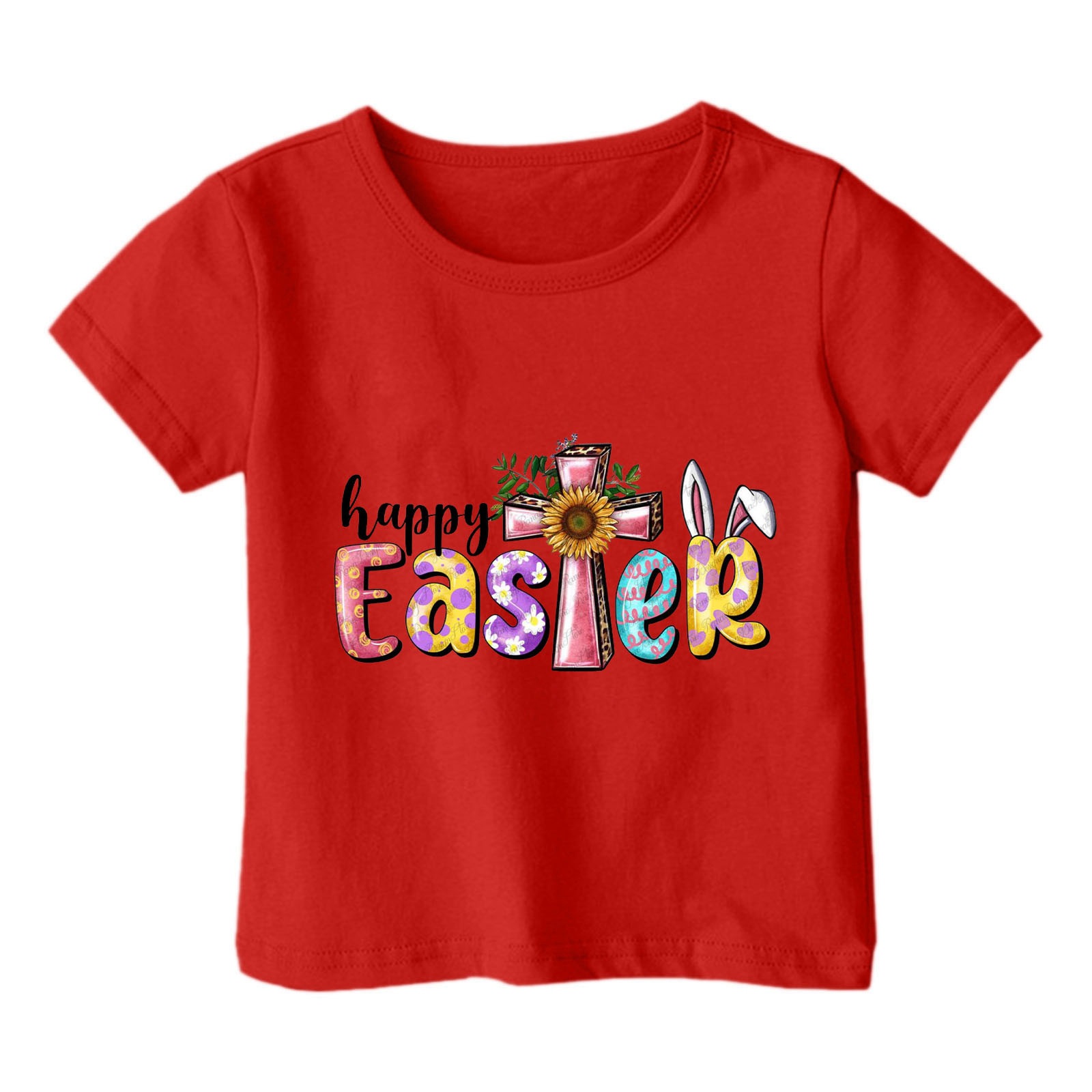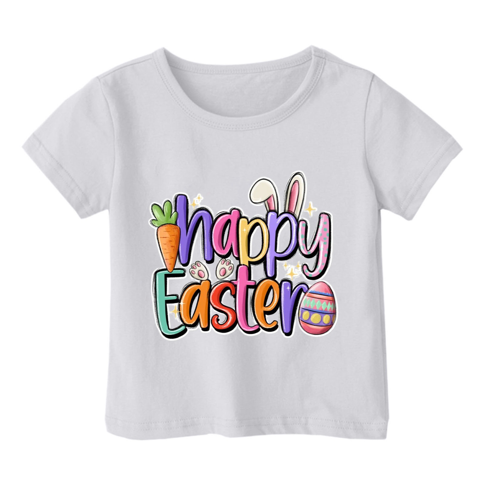 2024 크로스 보더 귀여운 프린트 부활절 반팔 아동용 탑 여름 루즈 캐주얼 트렌디 아동용 티셔츠