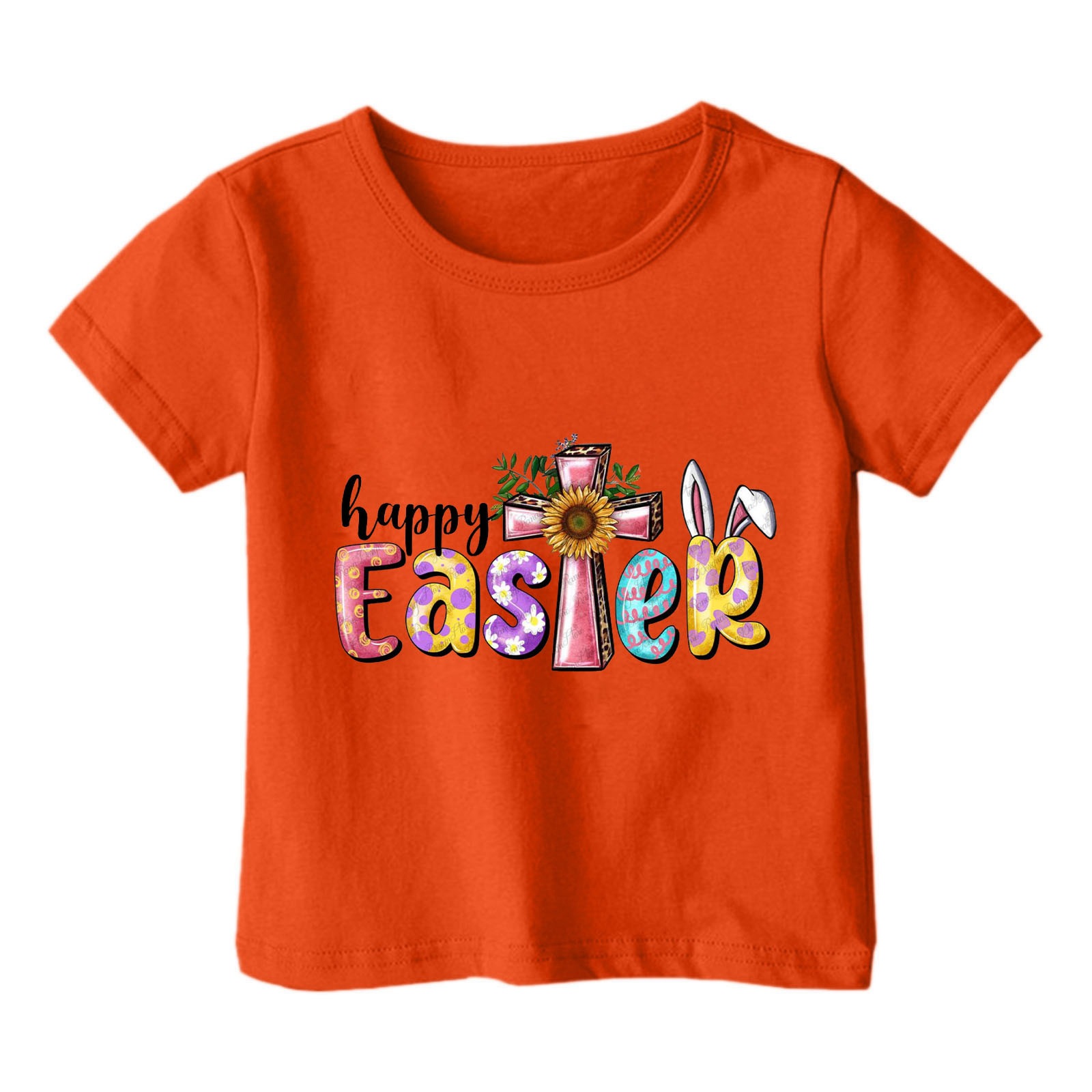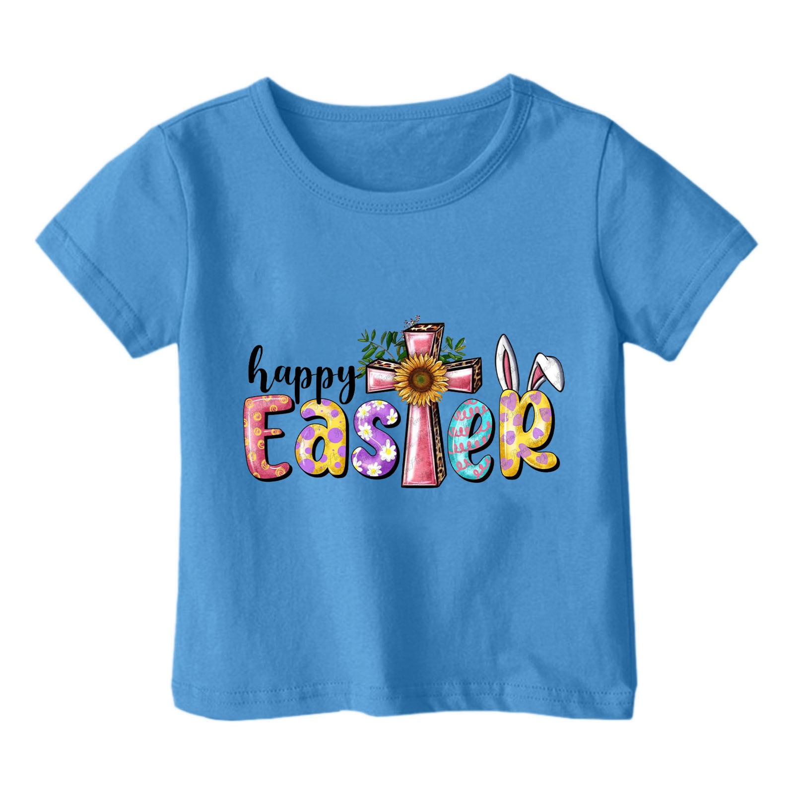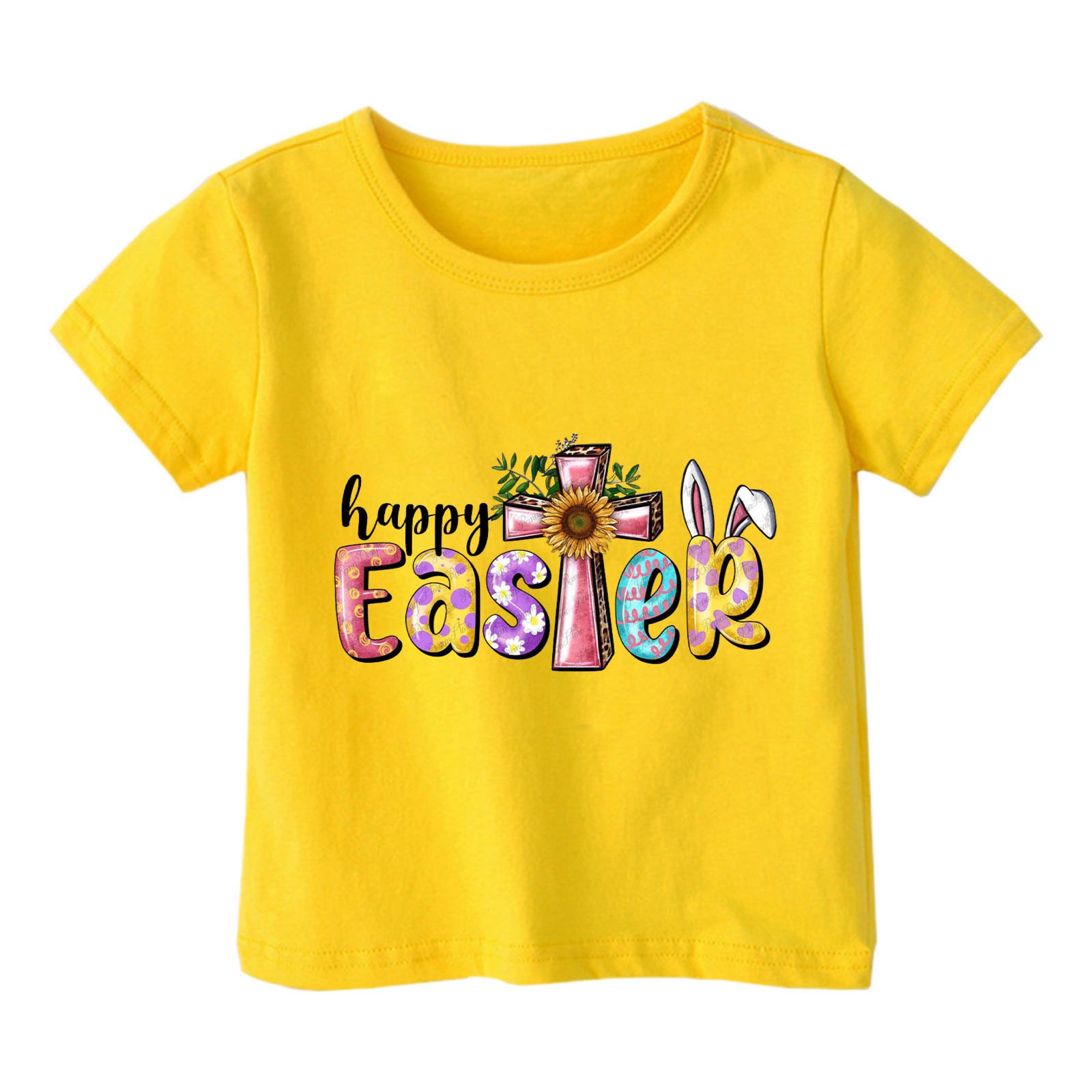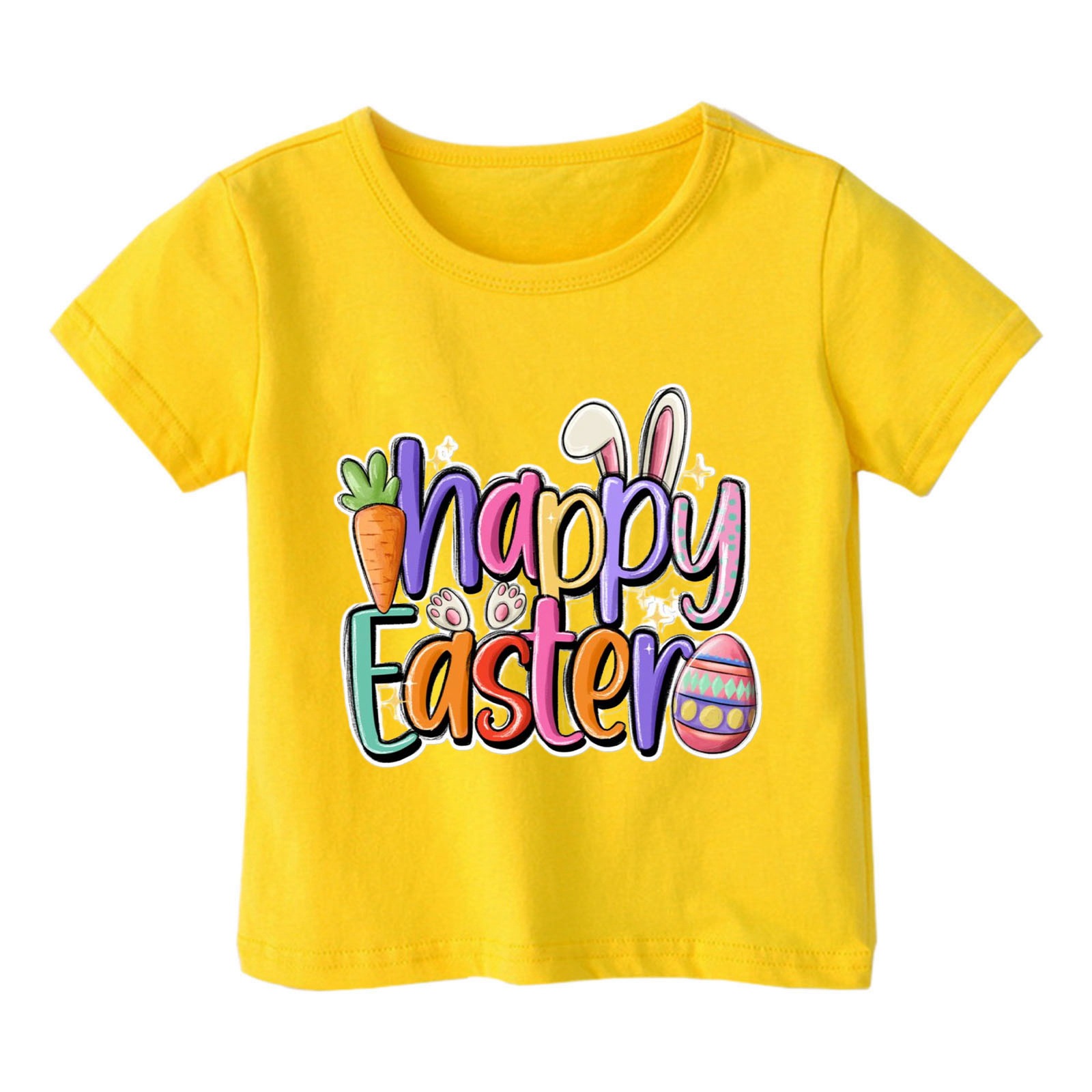 2024 크로스 보더 귀여운 프린트 부활절 반팔 아동용 탑 여름 루즈 캐주얼 트렌디 아동용 티셔츠스토어 가기