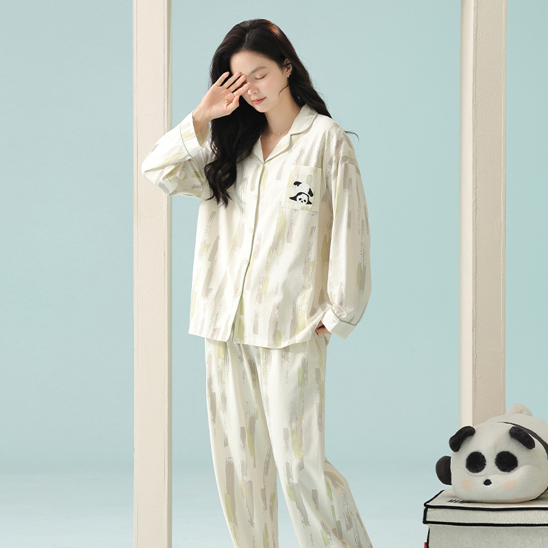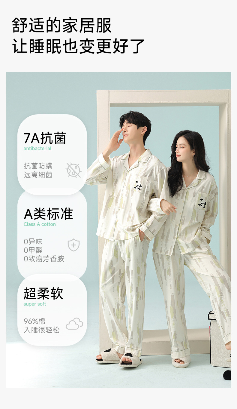 [항균성 신장면] 봄 커플 잠옷 봄 · 가을 여성 순면 긴 소매 랙 코튼 남자 홈 의류 세트스토어 가기