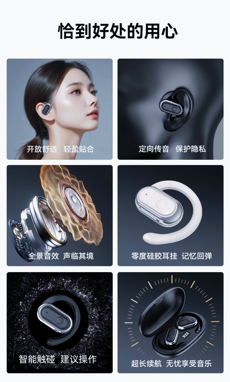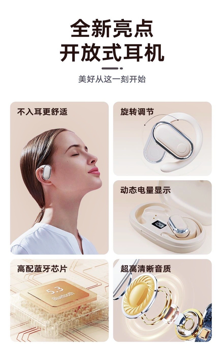 진정한 무선 블루투스 헤드셋 OWS 오픈 긴 내구성 스포츠 소음 감소 회전 가능한 게임 블루투스 헤드셋스토어 가기