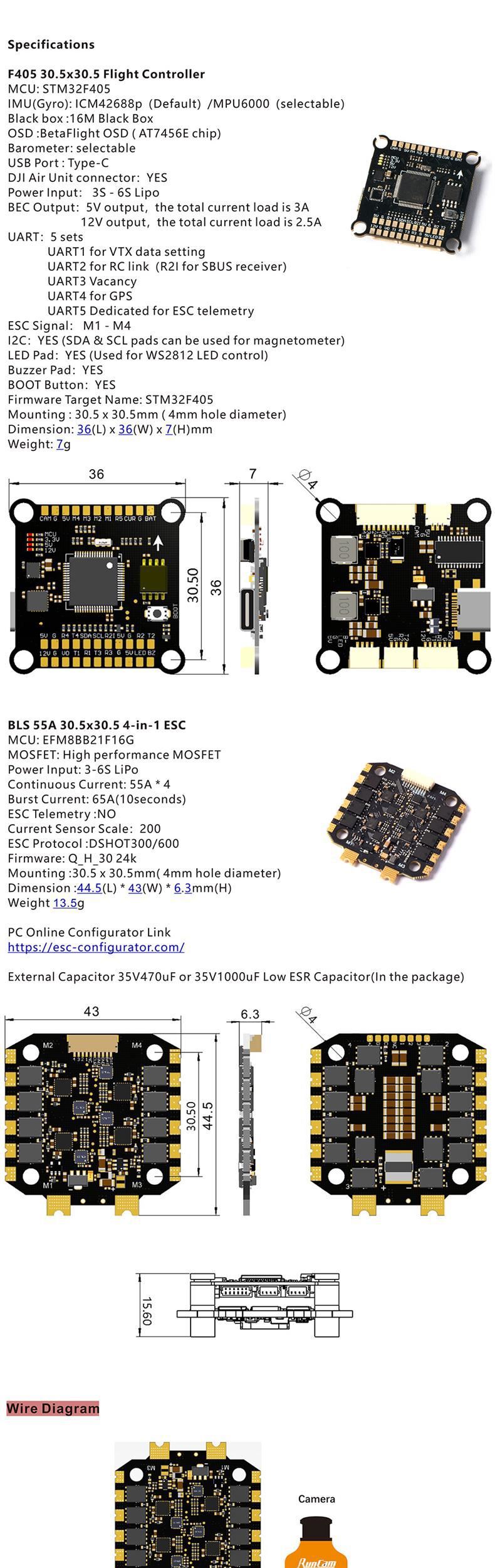 F4 비행 타워 FPV 횡단 기계 F405 비행 제어 60A ESC STACK