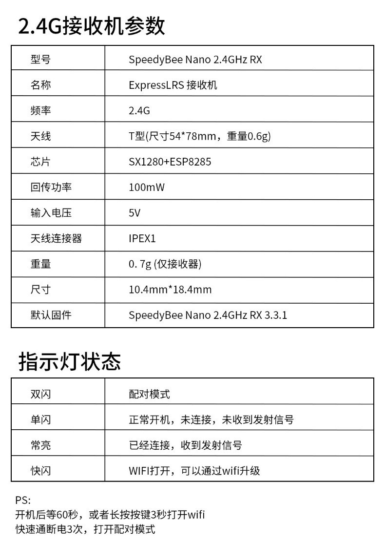 • SpeedyBeeNano2.4GELRS 수신기