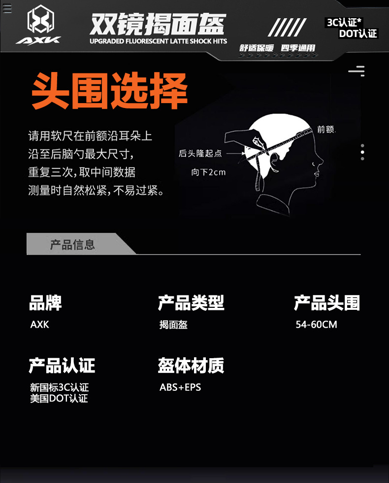 4.大小尺寸:均码,头围尺寸:54-61cm,单顶重量1.42KG (未含内盒),含内盒重量:1.77KG。