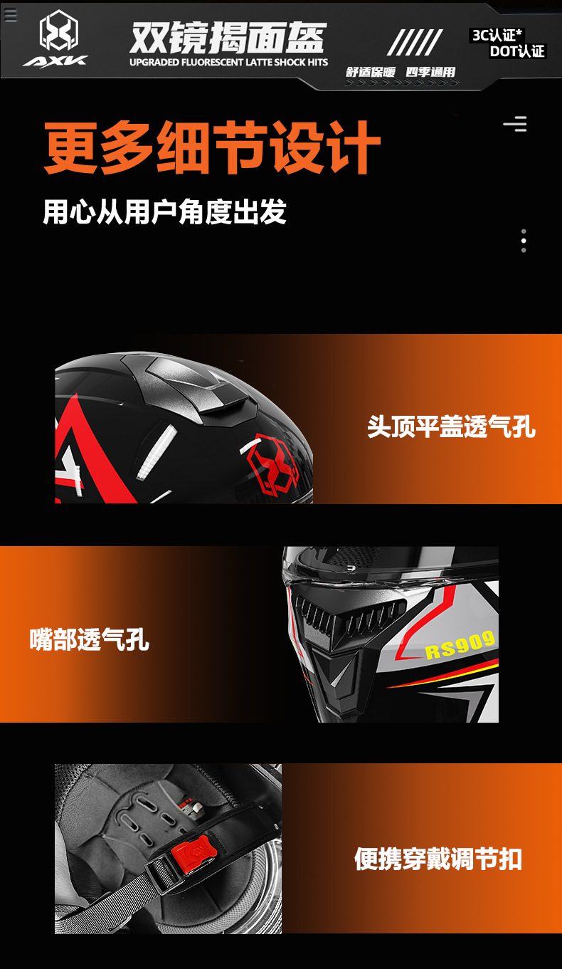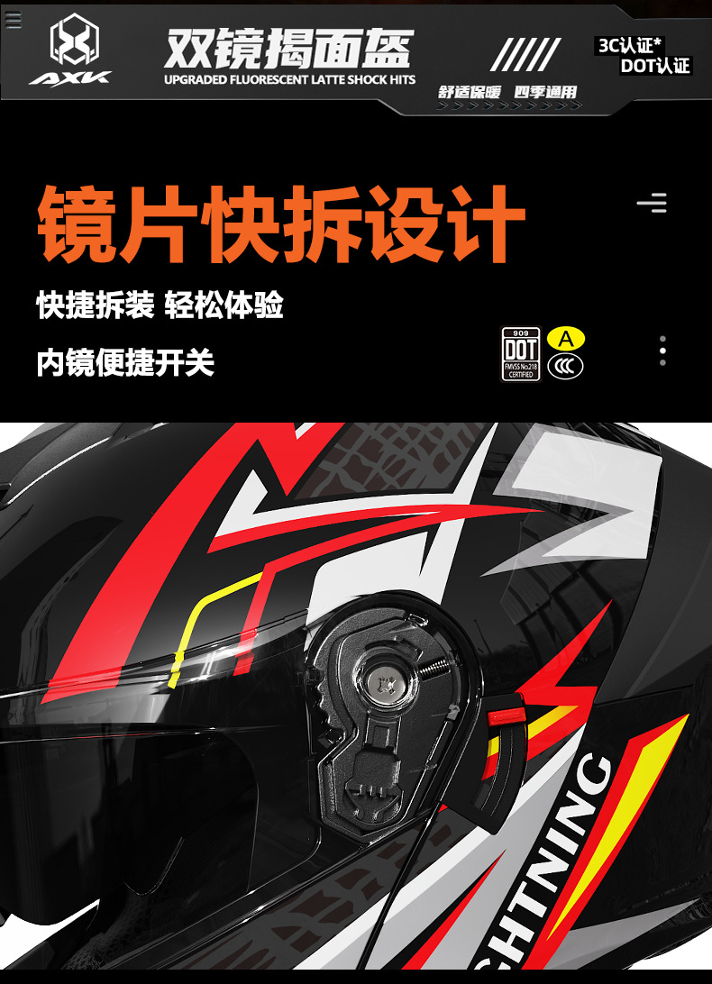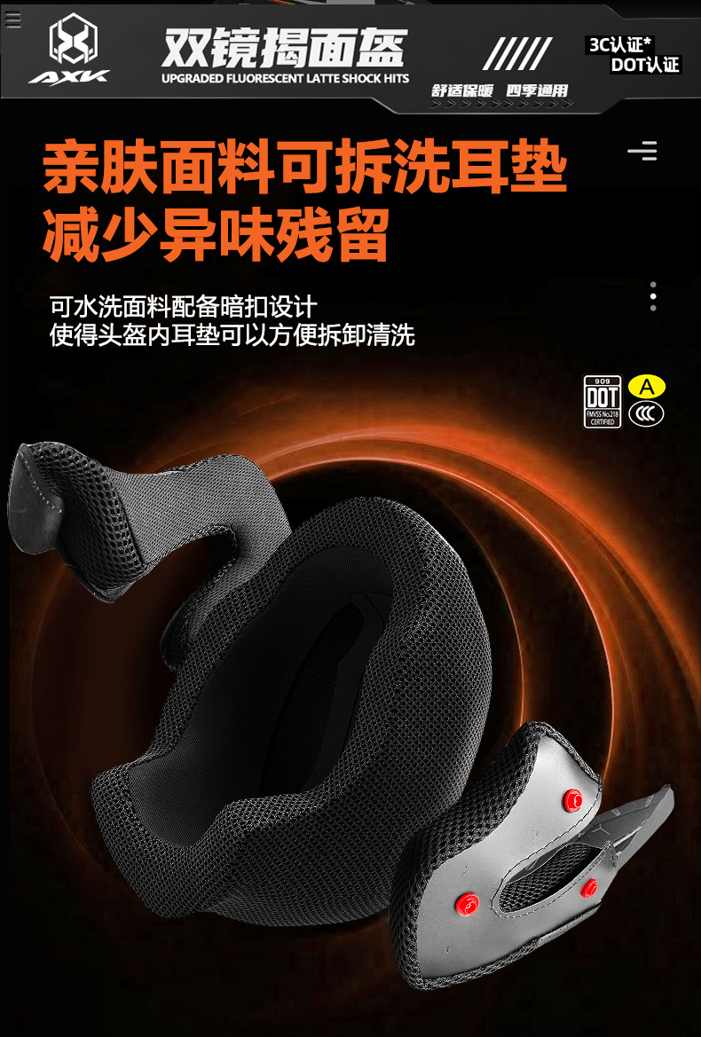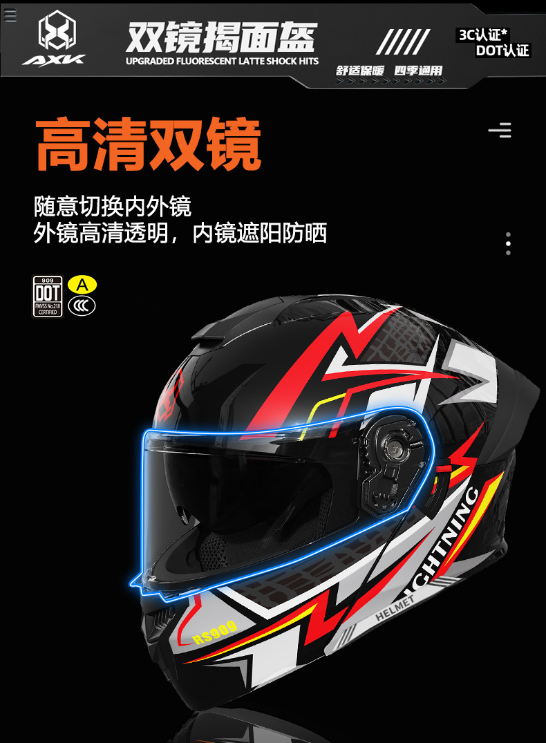 3.镜片:双镜片,外镜PC透明,内镜防晒。