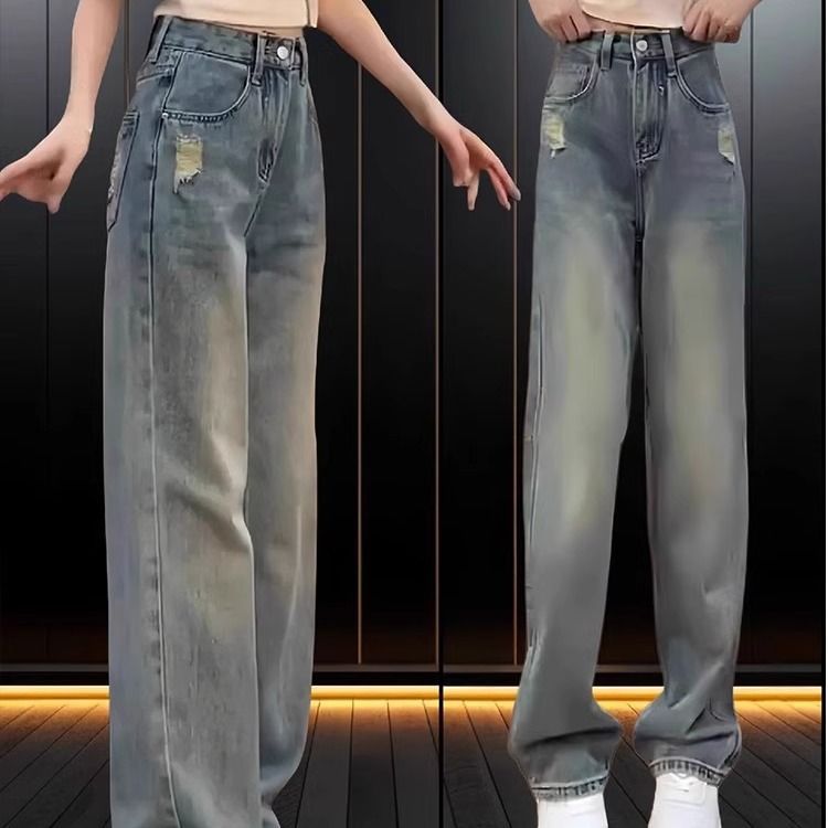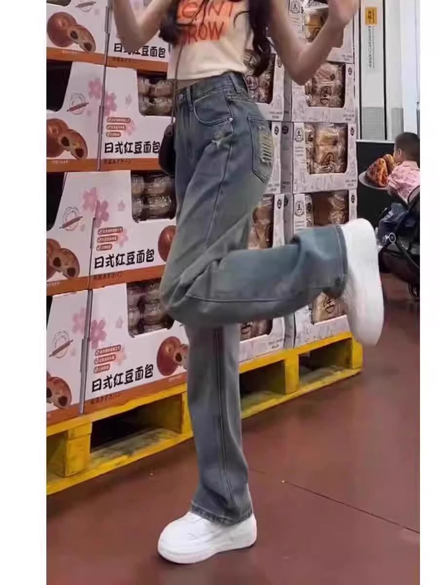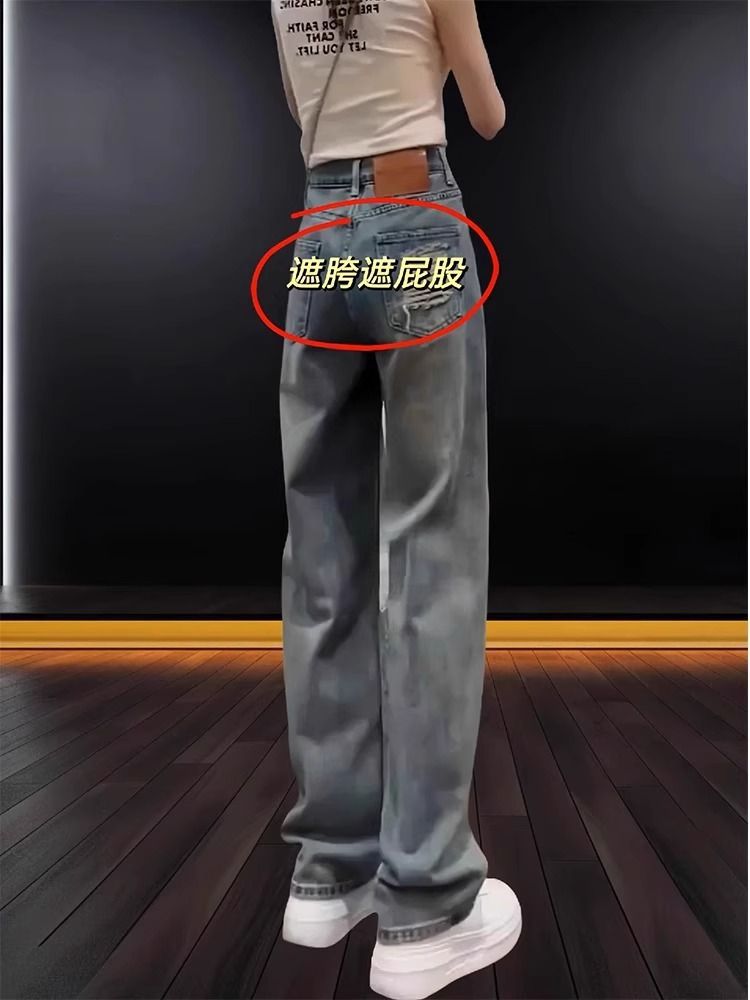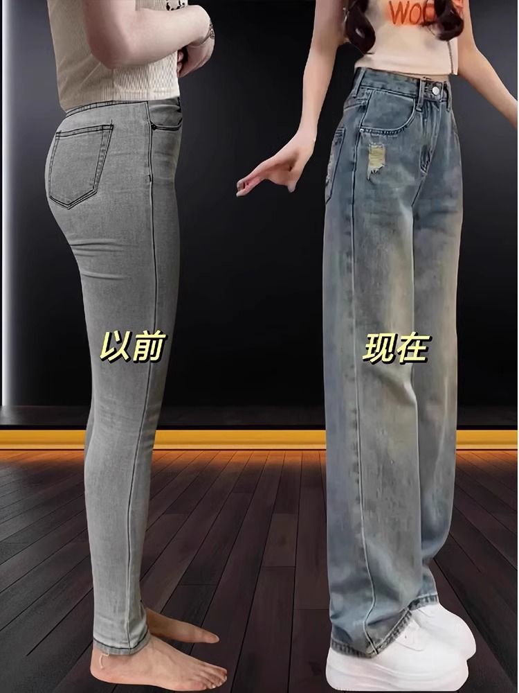 좁은 직선 다리 청바지 여성의 봄 2025 높은 허리 새로운 패션 느슨한 슬리밍 작은 넓은 다리 바지스토어 가기